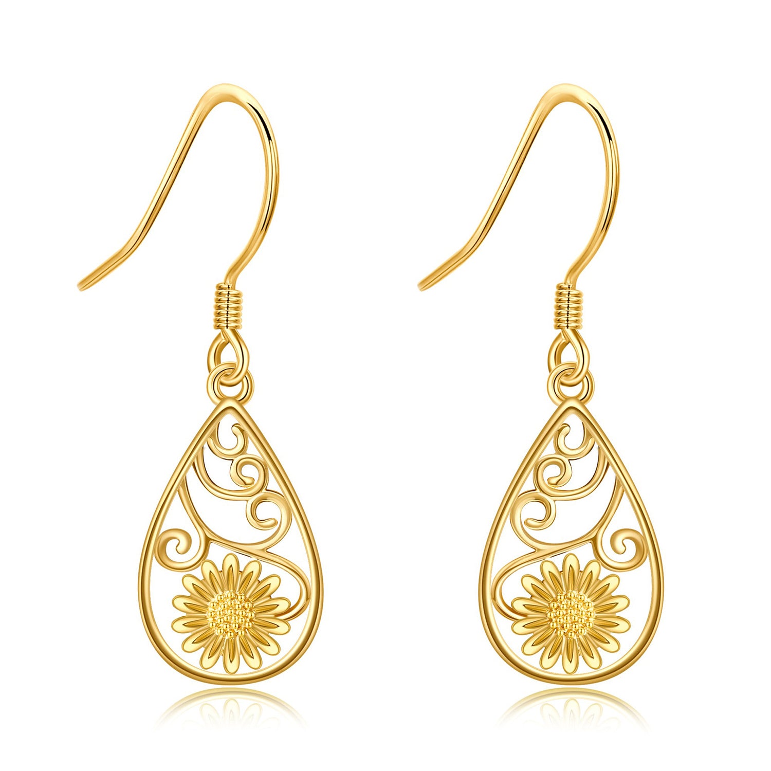 These 14K Gold Sunflower Drop Earrings by YFN are a stone-free blend of elegance and simplicity for women. Crafted from high-quality 14K gold, these stunning drop earrings boast a unique sunflower design, ensuring both timeless allure and versatile sophistication.