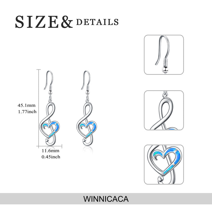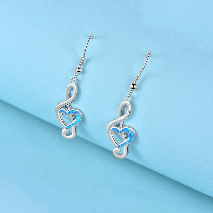 These Drop Earrings are crafted from High-Quality Sterling Silver with White Gold Plating, featuring Captivating Opal Inlays and Elegant Music Symbols.