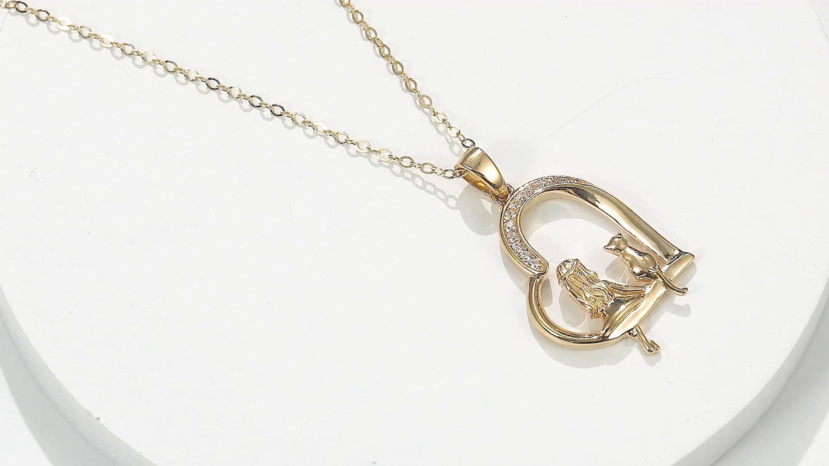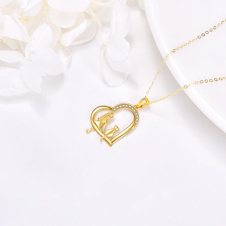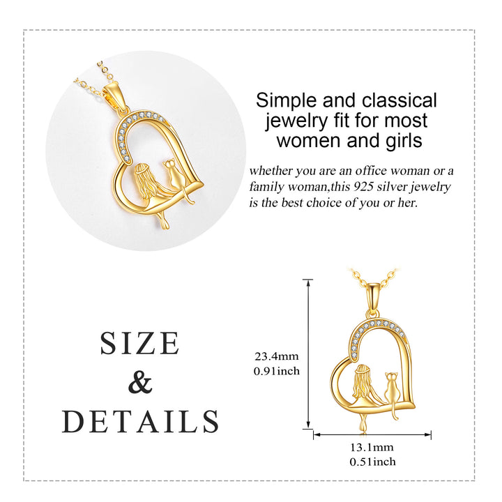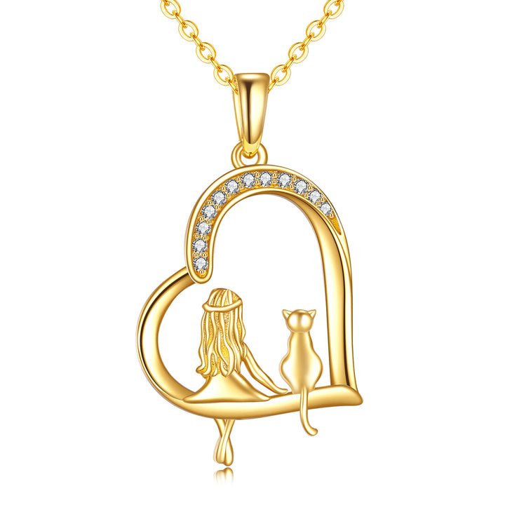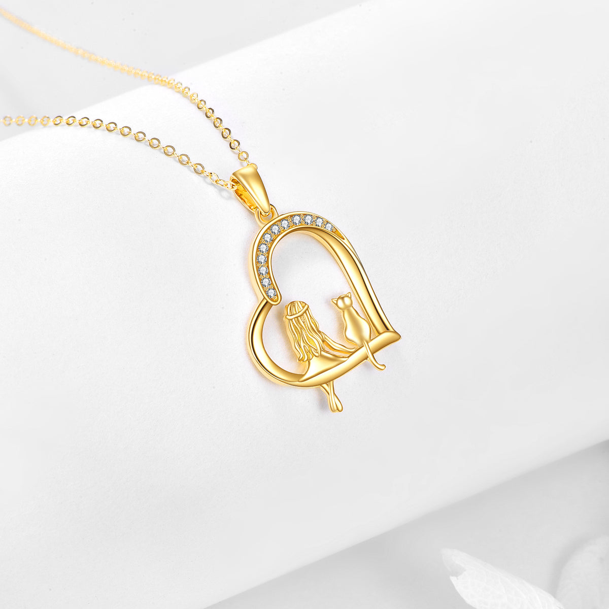 This 14K Gold Heart Cat & Girl Pendant Necklace by YFN is a perfect blend of whimsy and elegance for the modern woman. Made entirely from high-quality 14K Gold, this stone-free pendant showcases a beautifully crafted clear Cat and Heart motif. The timeless piece ensures durability and lasting shine, adding a touch of playful sophistication to any outfit, and effortlessly transitioning from day to night.