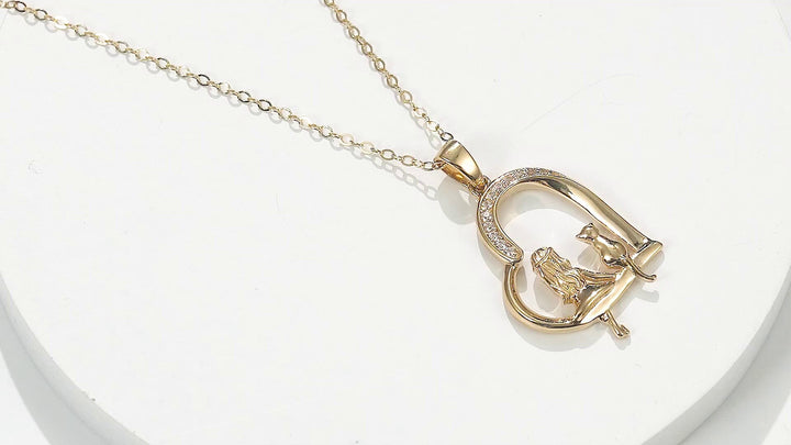 Crafted entirely from high-quality 14K Gold, this stone-free pendant features a clear Cat and Heart motif.