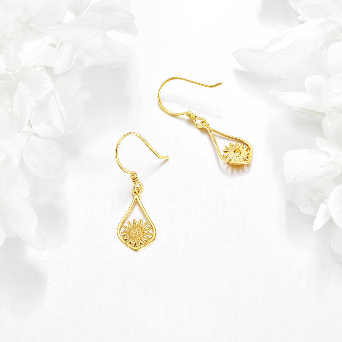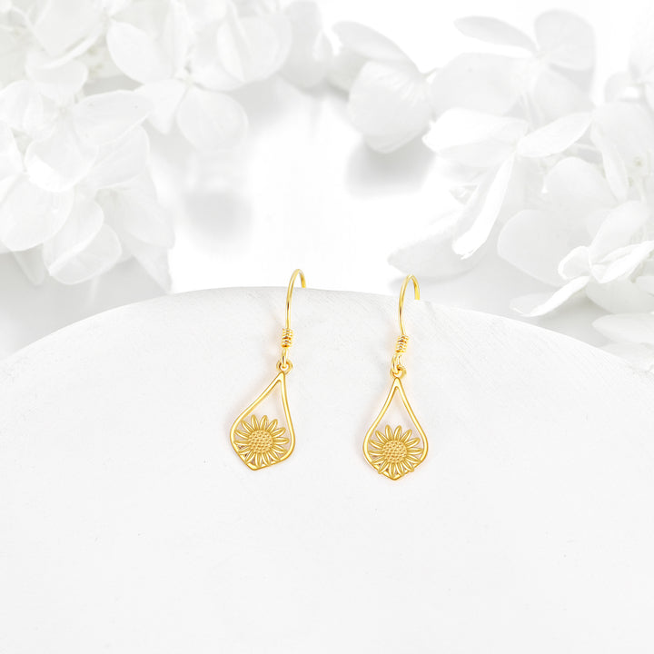 These 14K Gold Sunflower Drop Earrings by YFN are a perfect blend of elegance and charm. Crafted from high-quality 14K gold, the drop earrings feature a sleek, stone-free sunflower motif, symbolizing warmth and positivity. They are lightweight and comfortable, providing a cheerful touch and radiant gold finish that effortlessly elevates any outfit for the modern woman.
