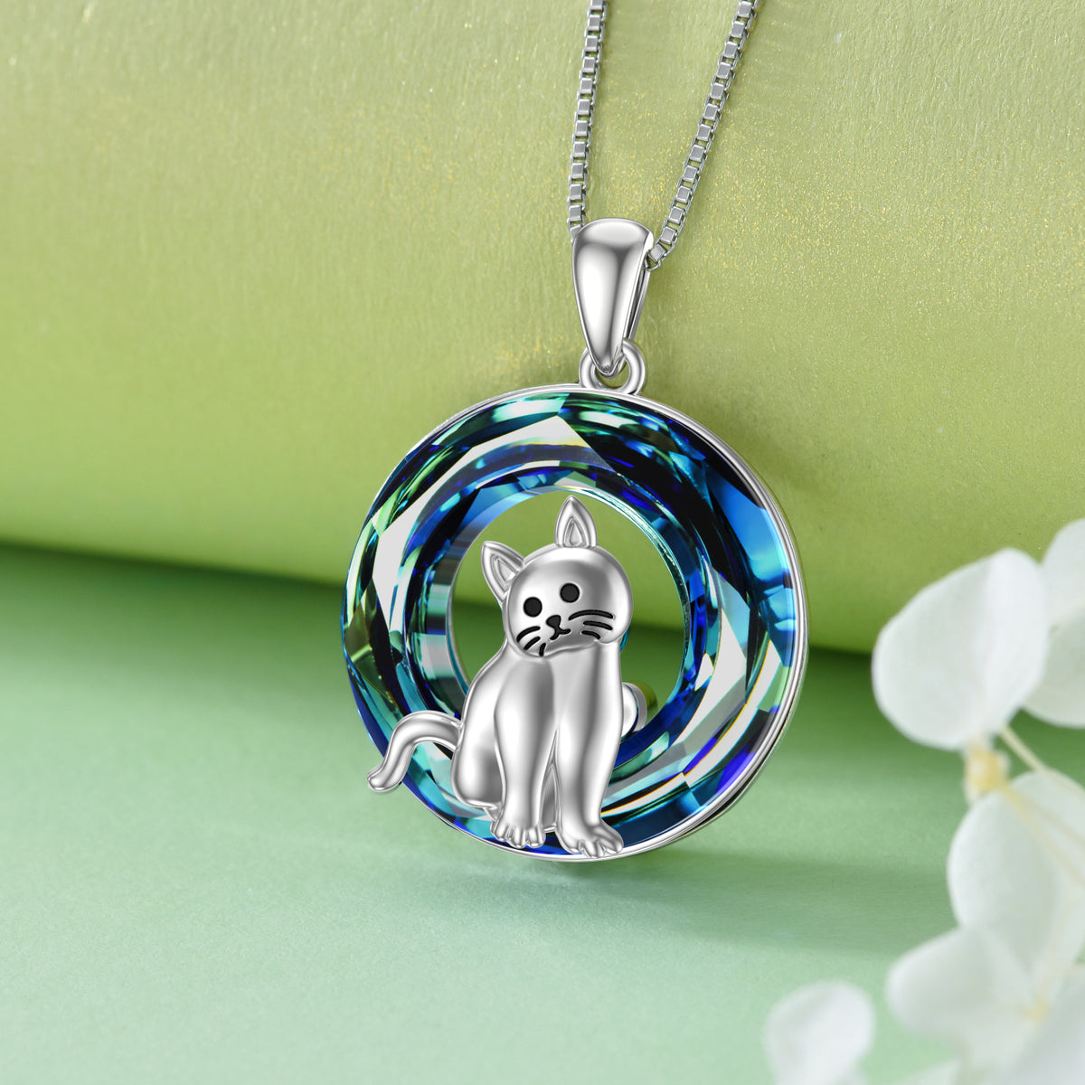 Sterling Silver Cat Blue Circle Crystal Pendant Necklace