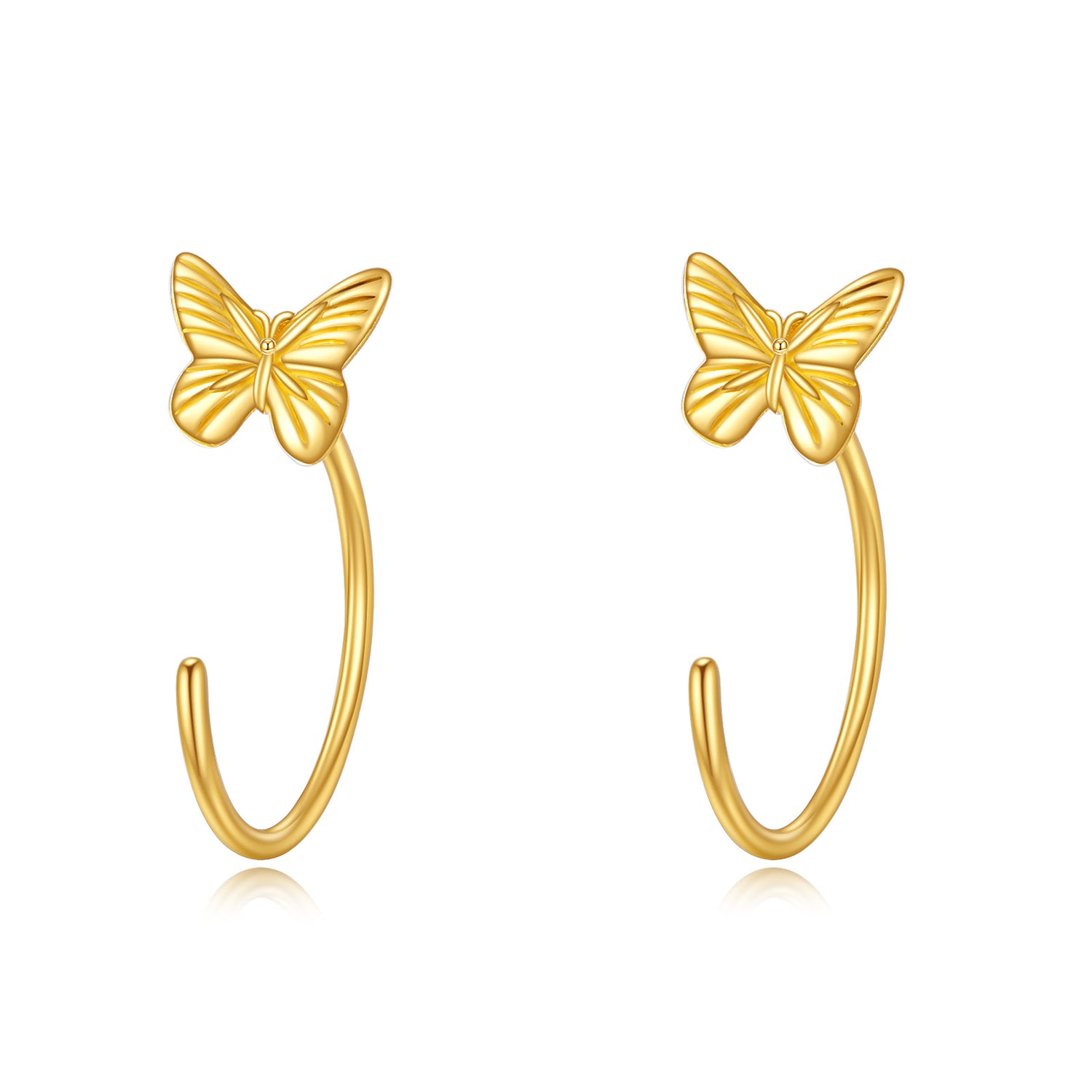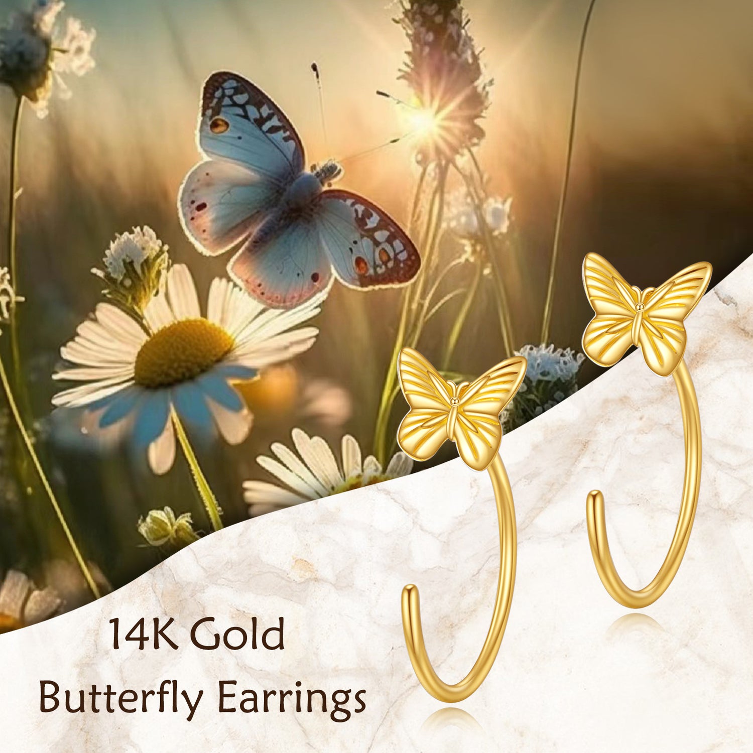 Crafted from 14K Solid Gold (58.5% pure), these half huggie hoop earrings feature a delicate Butterfly motif.