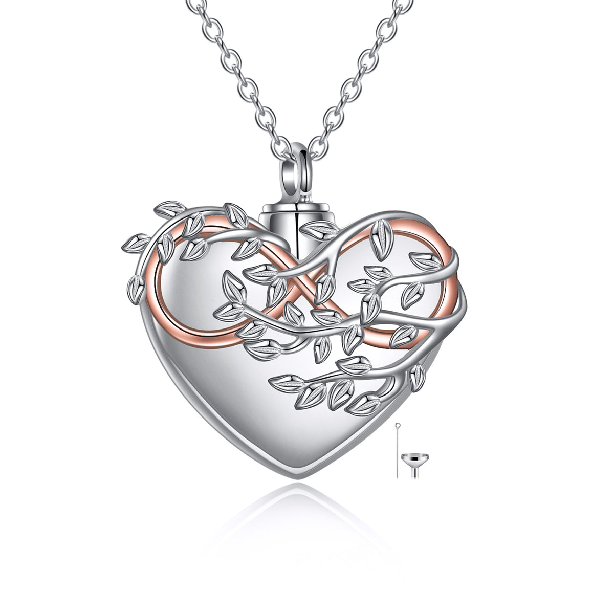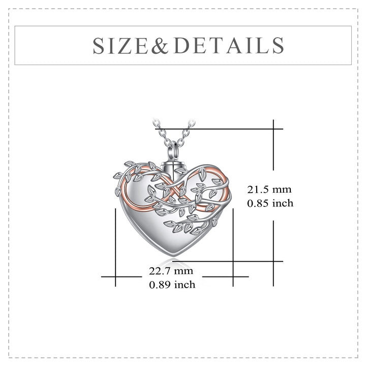 Sterling Silver Two-Tone Tree Of Life & Heart With Infinity Symbol Urn Necklace For Ashes
