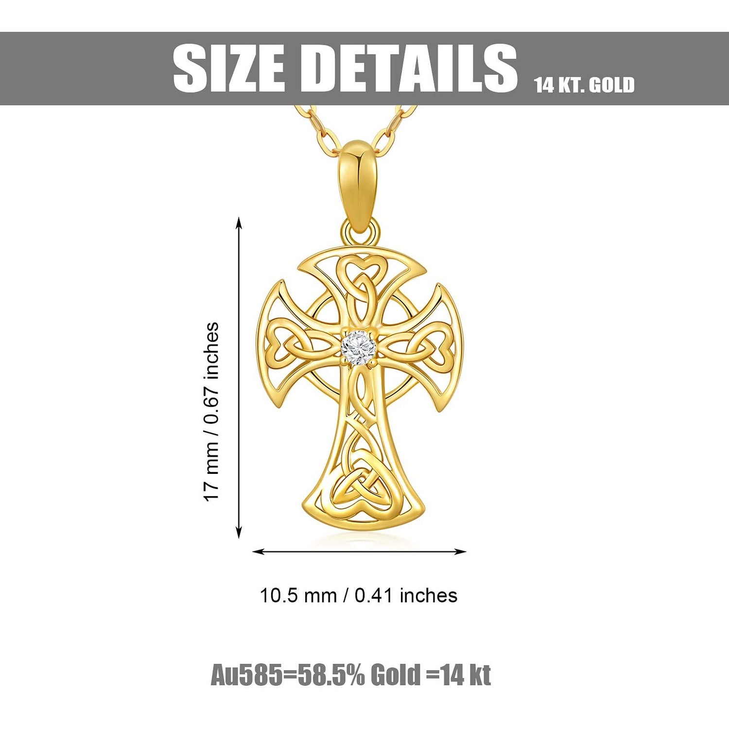 14K Gold Cubic Zirconia Celtic Knot & Cross Pendant Necklace