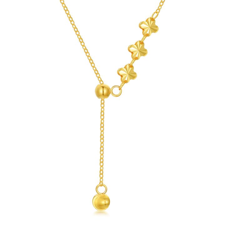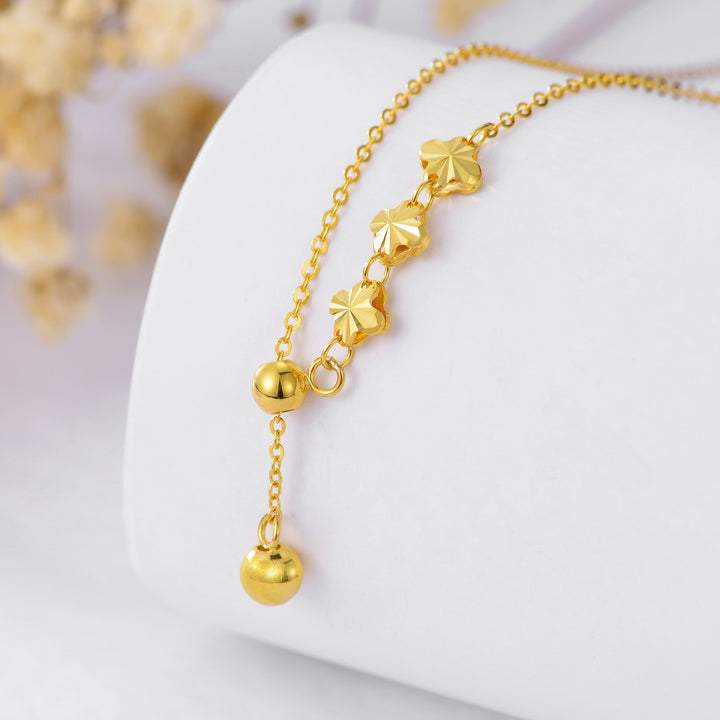 18K Gold Four Leaf Clover & Bead Adjustable Y Necklace