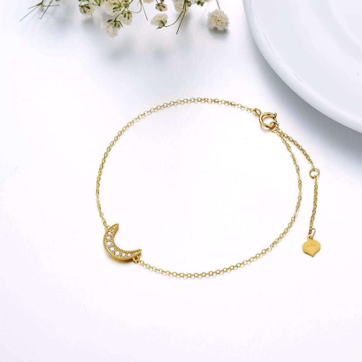 This 14K Gold Diamond Moon Charm Bracelet by YFN is an exquisite and luxurious charm bracelet for modern women. Crafted from high-quality 14K gold, this elegant bracelet features a beautifully crafted moon Charm encrusted with a dazzling diamond. Its sophisticated design combines finesse and contemporary style, making it perfect for both everyday wear and special occasions.