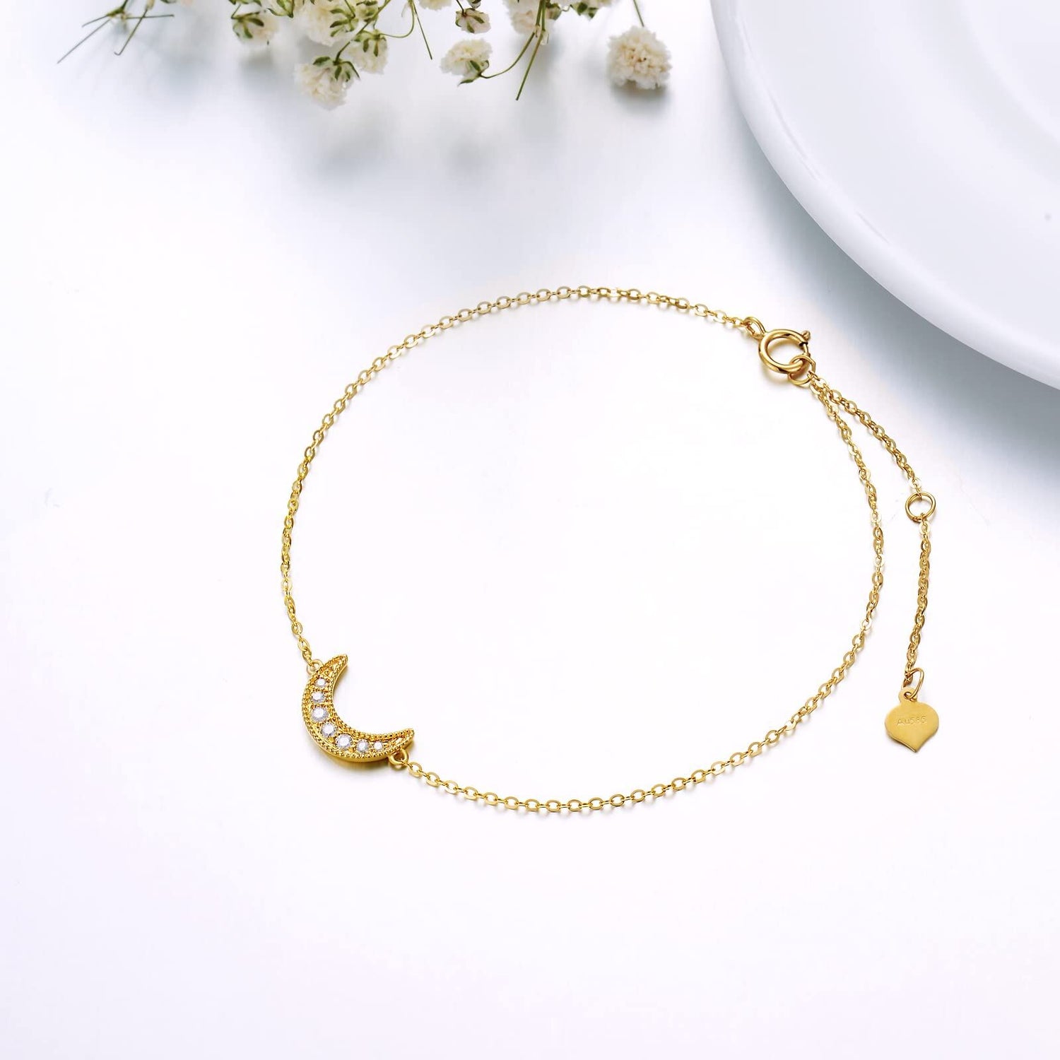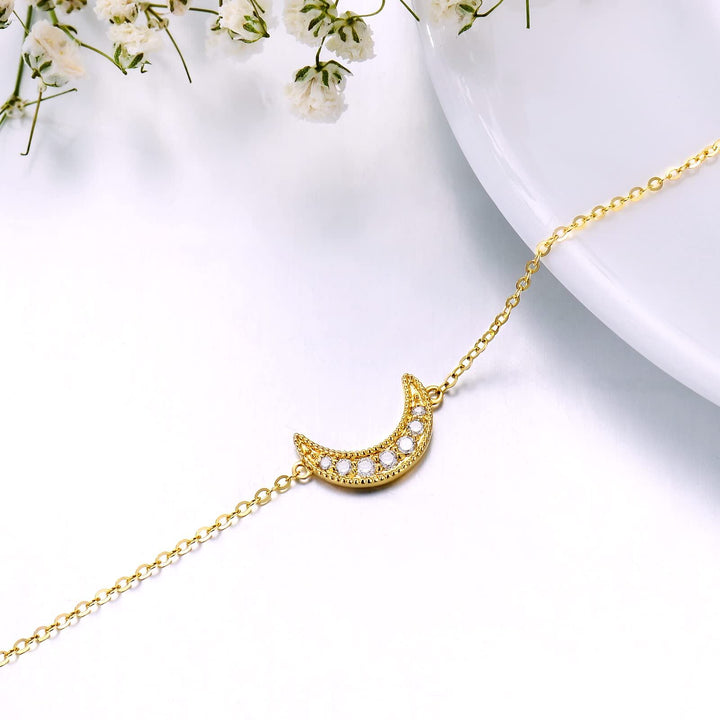 This Charm Bracelet is Crafted from High-Quality 14K Gold, featuring a Beautifully Crafted Moon Charm Encrusted with a Dazzling Diamond.