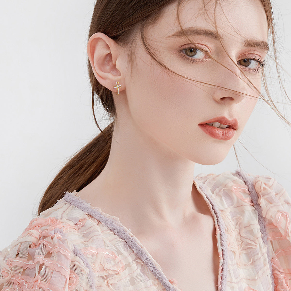 These 10K Gold Cubic Zirconia Cross Stud Earrings by YFN offer a timeless representation of faith paired with graceful sparkle. Designed for women who appreciate meaningful yet sophisticated jewelry, each stud showcases a delicate cross silhouette adorned with radiant cubic zirconia that reflect light beautifully. Lightweight and refined, these earrings bring a touch of spiritual elegance to both everyday wear and special occasions. Their polished gold finish enhances the brilliance of each stone, creating a harmonious blend of devotion and modern style that complements any jewelry collection.