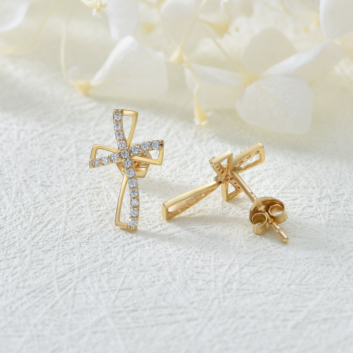 10K Gold Cubic Zirconia Cross Stud Earrings