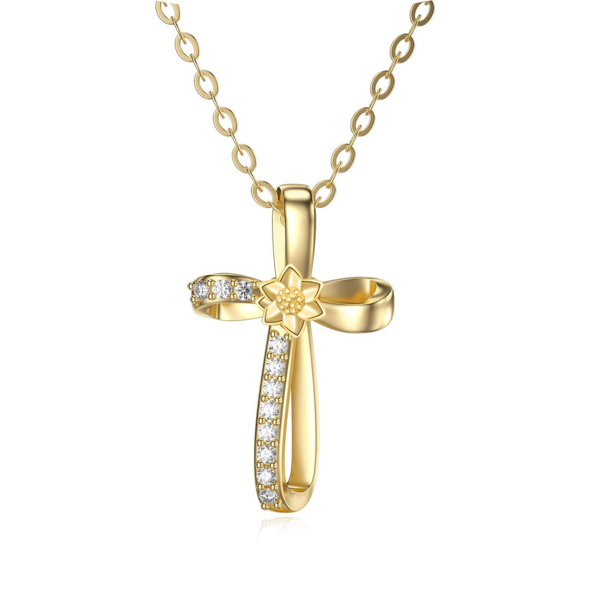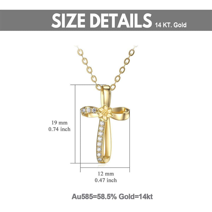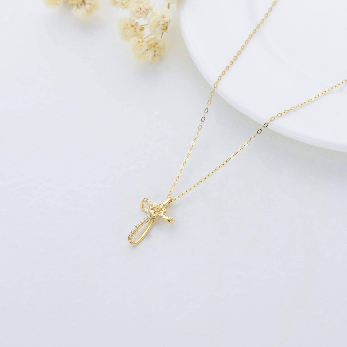 14K Gold Cubic Zirconia Cross Knot Pendant Necklace