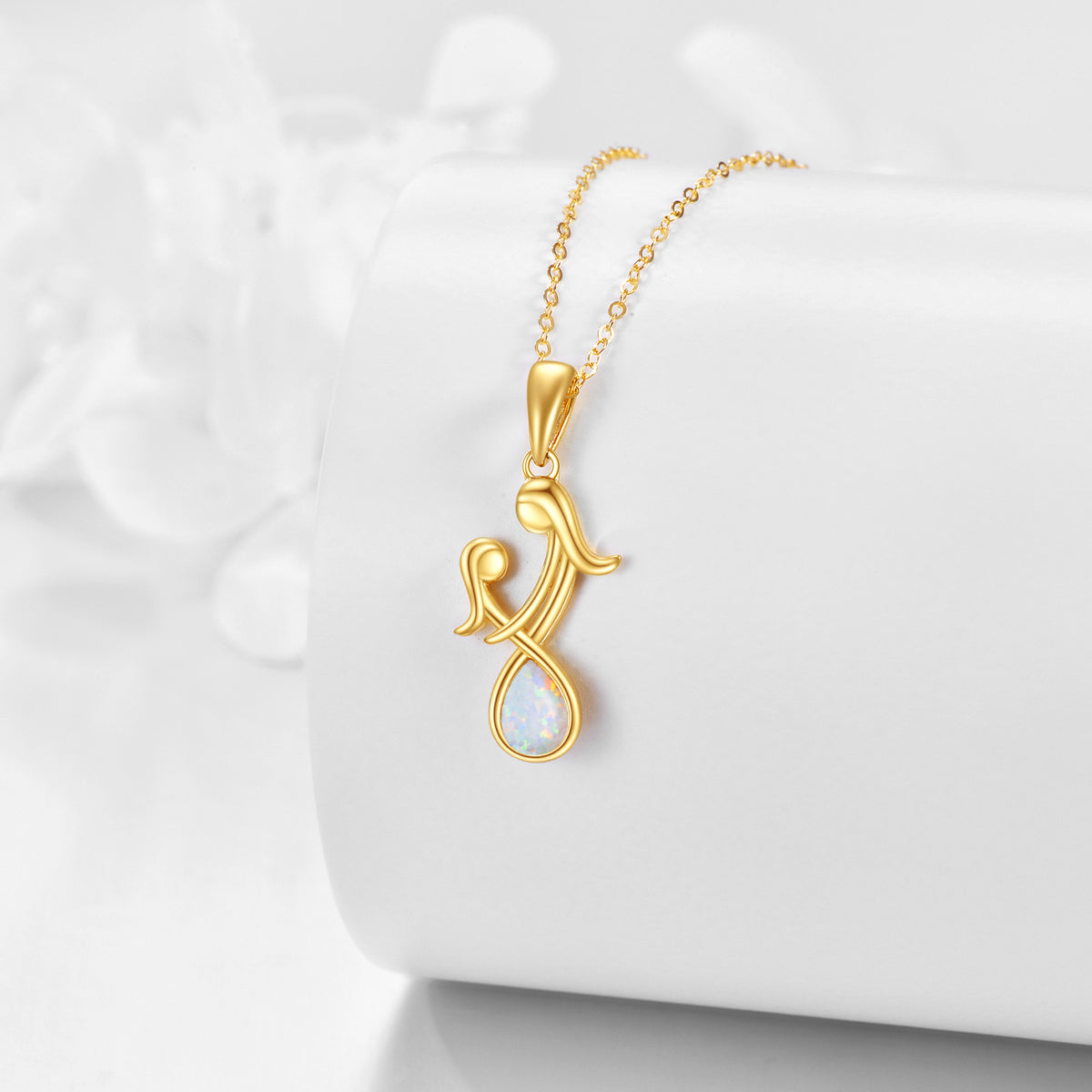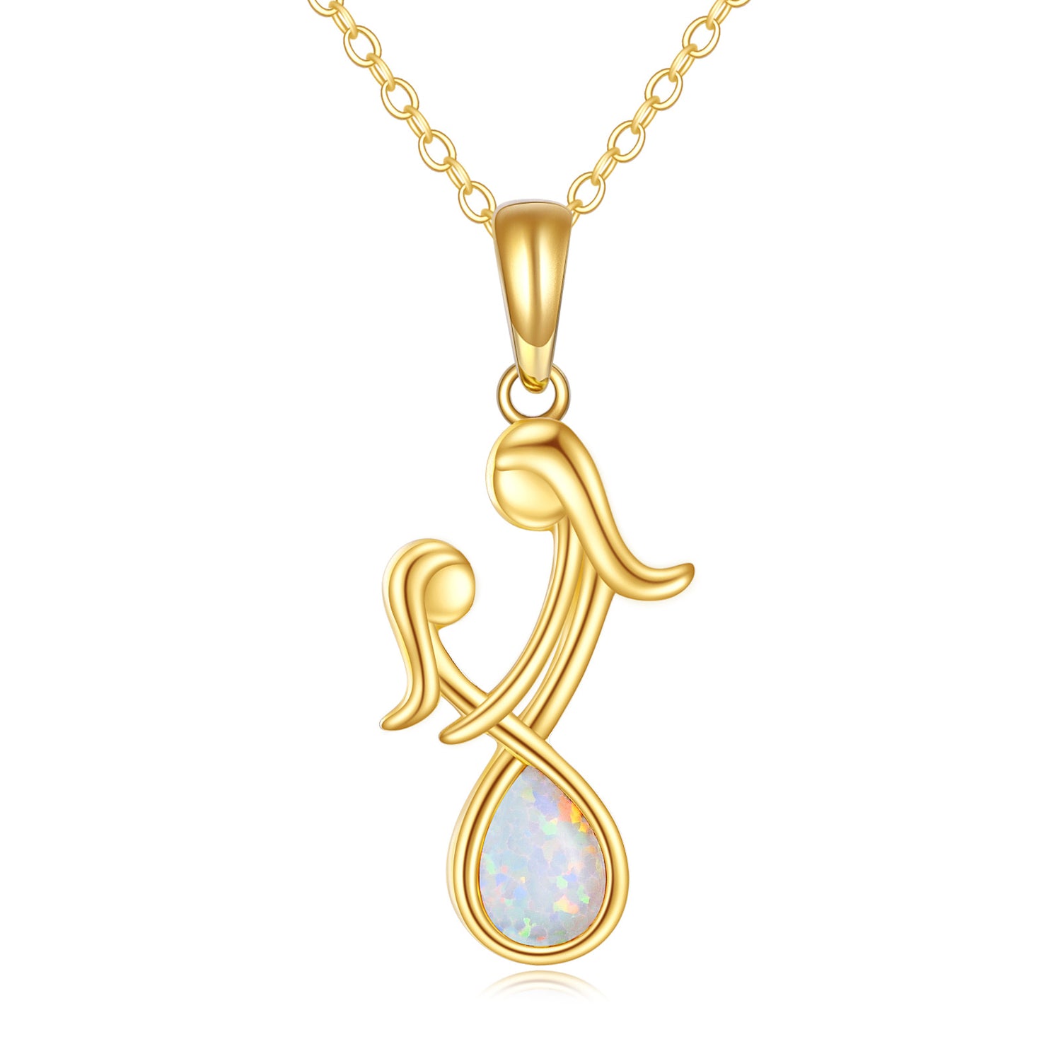 Crafted from high-quality 14K Gold, this pendant features a stunning genuine Opal stone and a unique Mother & Daughter design.