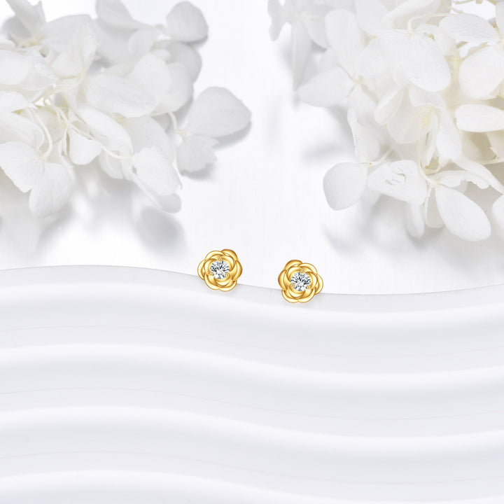 14K Gold Moissanite Rose Stud Earrings
