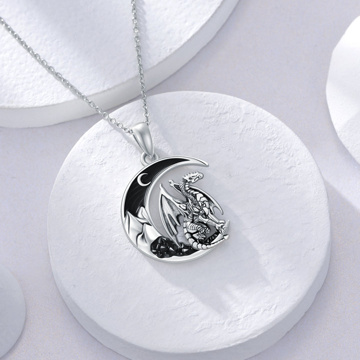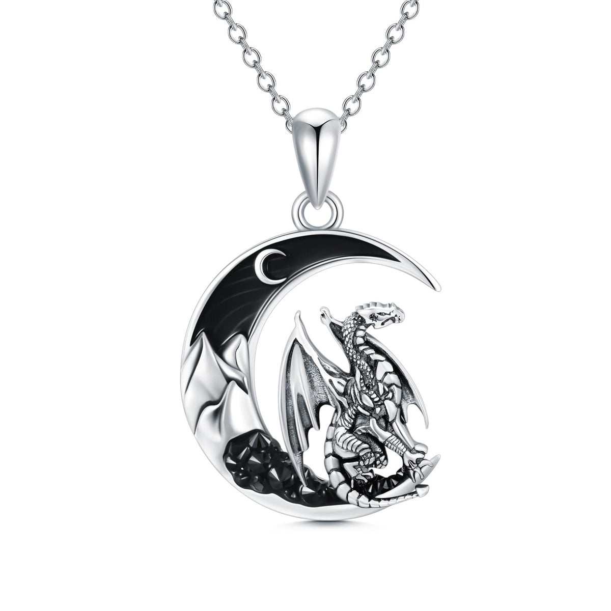 This Sterling Silver Dragon & Moon Necklace by YFN is a captivating, unisex accessory for any style. Crafted from high-quality sterling silver with a Retro Silver finish, this no-stone Pendant Necklace features an intricately detailed Dragon entwined with a Crescent Moon, highlighting exquisite craftsmanship and vintage charm.