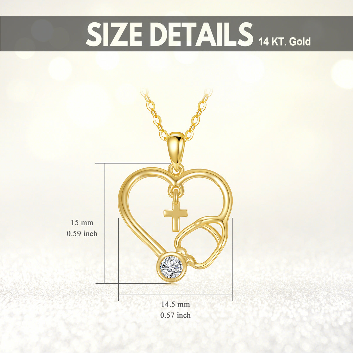 Crafted from 14K Gold, featuring a Pendant Necklace with Cubic Zirconia and a Personalized Birthstone set in Cross, Heart, and Stethoscope Motifs.