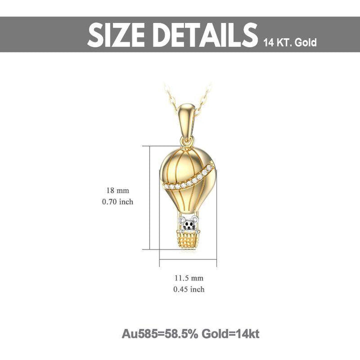 This Pendant Necklace is crafted from High-Quality 14K Gold, Featuring a Zircon-Studded Mouse and Hot Air Balloon Design.