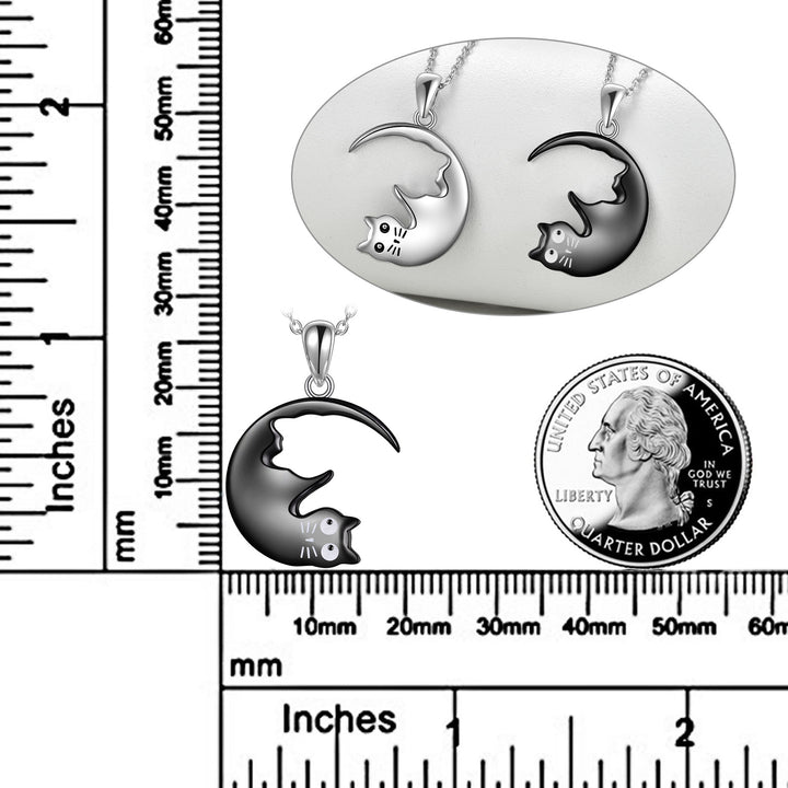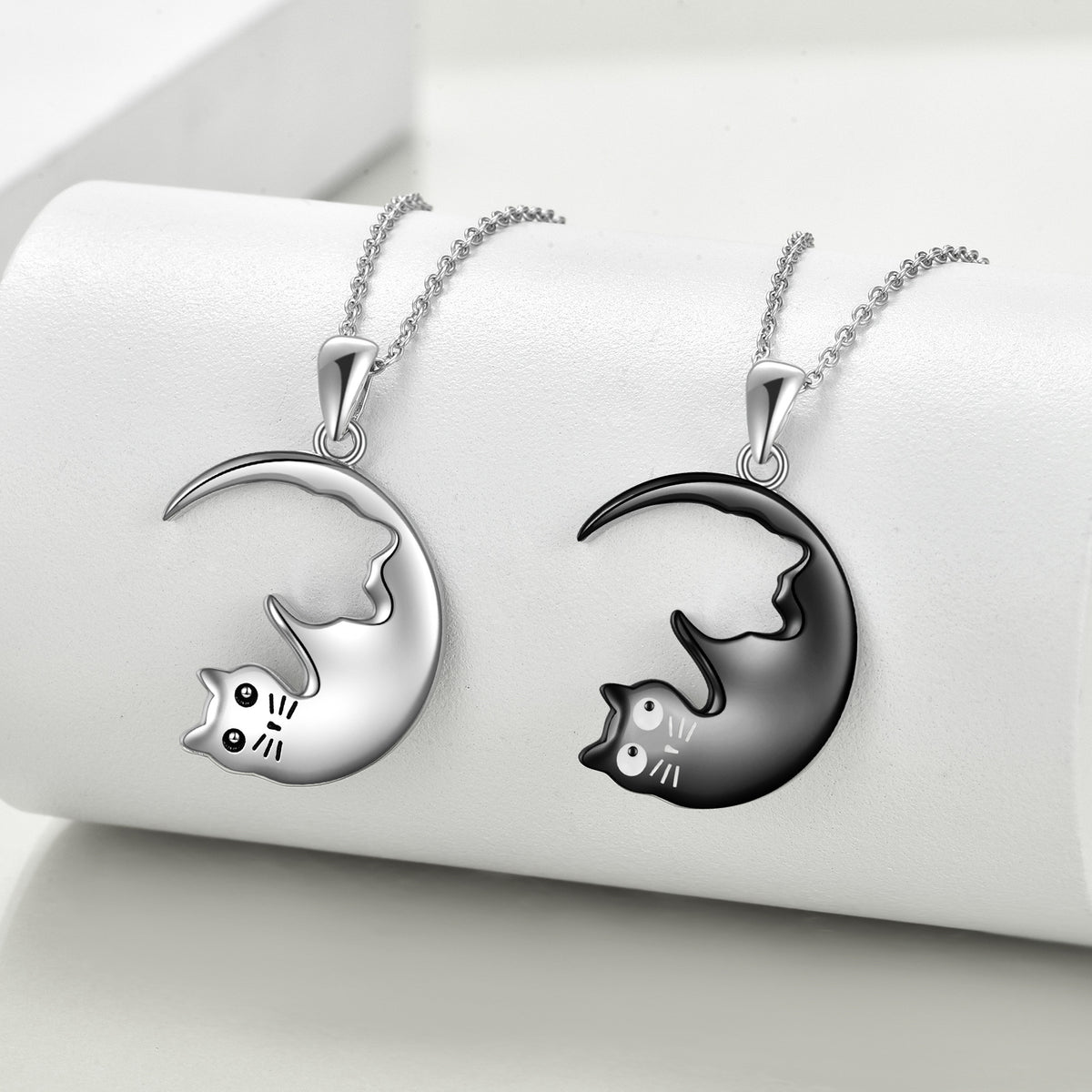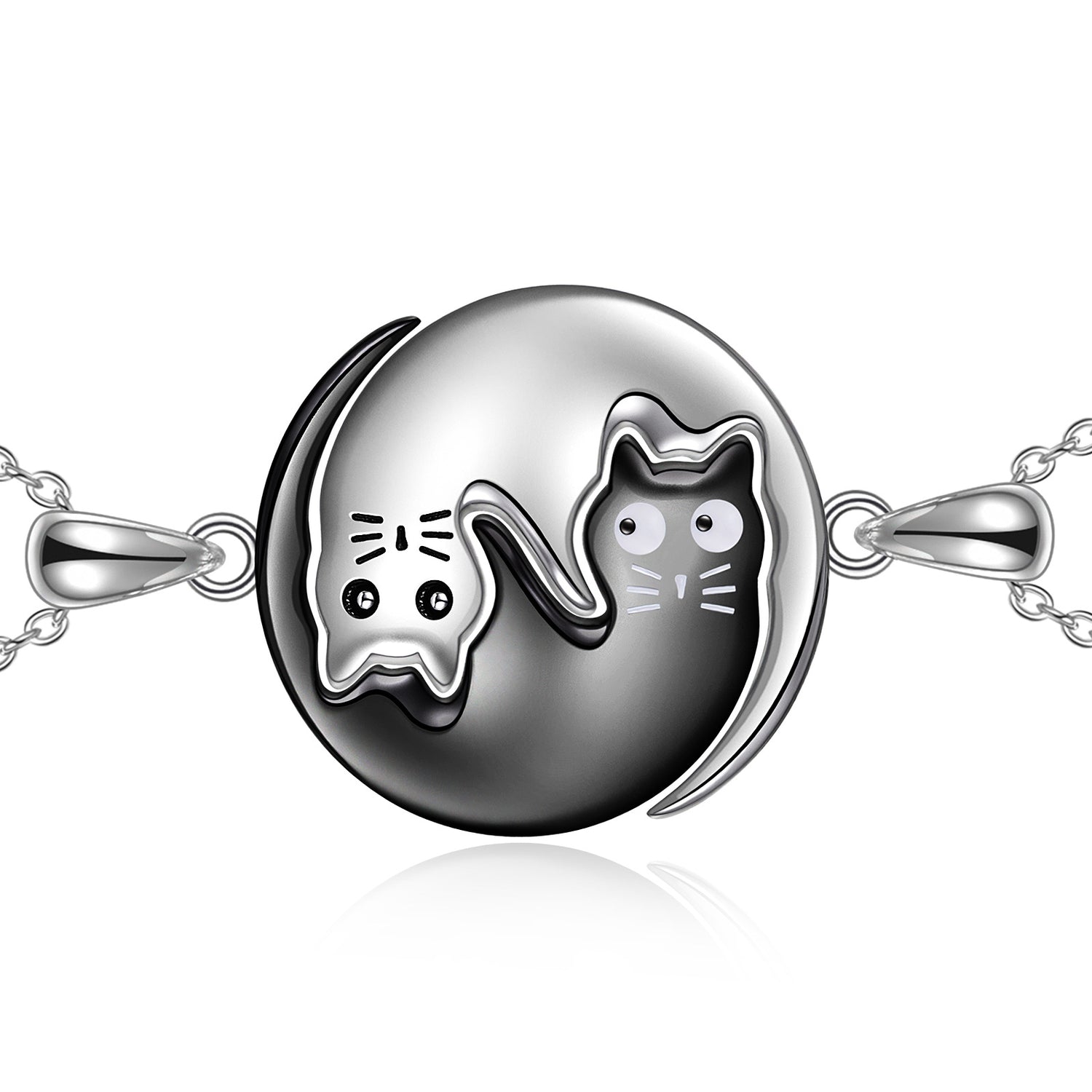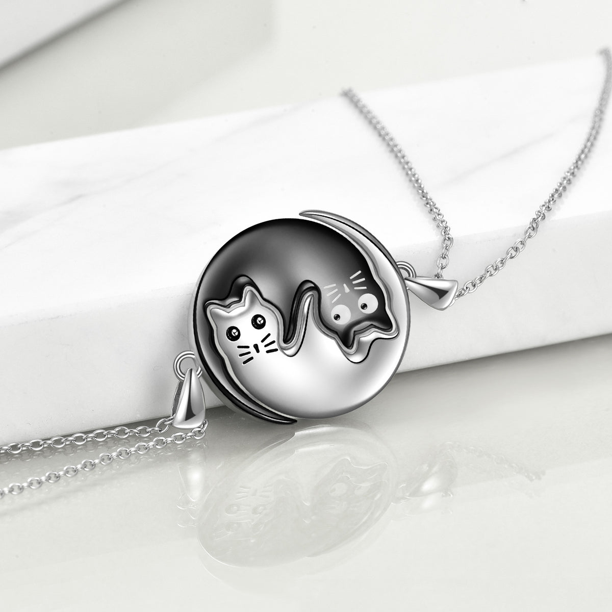 Sterling Silver Two-tone Cat & Yin Yang Pendant Necklace