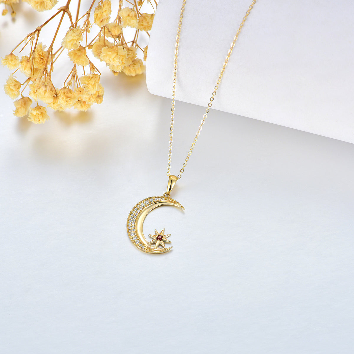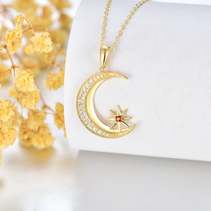 14K Gold Moissanite Moon & Star Pendant Necklace