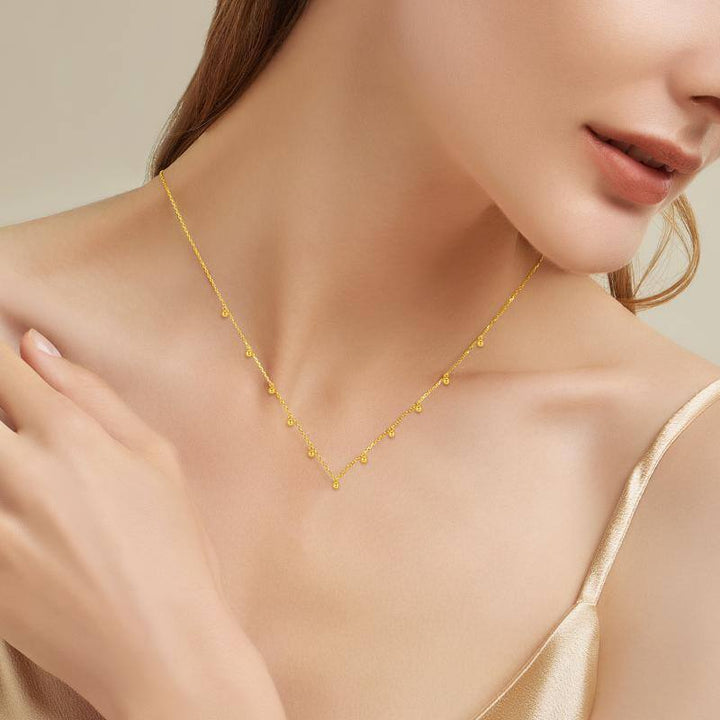 This 14K Gold Bead Pendant Necklace by YFN embodies refined minimalism through its delicate bead design and pure gold radiance. Stone-free and intentionally understated, the pendant allows the beauty of gold to take center stage. Its lightweight and versatile styling makes it perfect for layering or wearing alone as a subtle statement of sophistication. Designed for women who appreciate clean, modern elegance, it becomes a timeless wardrobe essential.