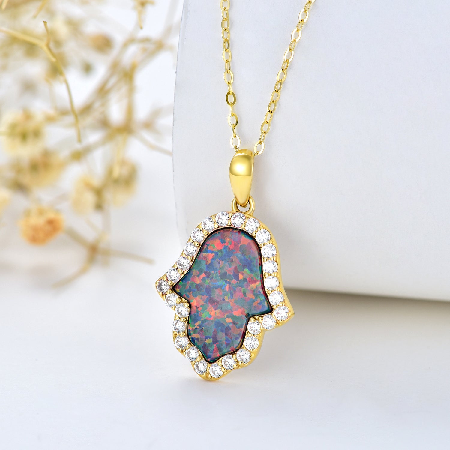 14K Gold Opal Hamsa Hand Pendant Necklace