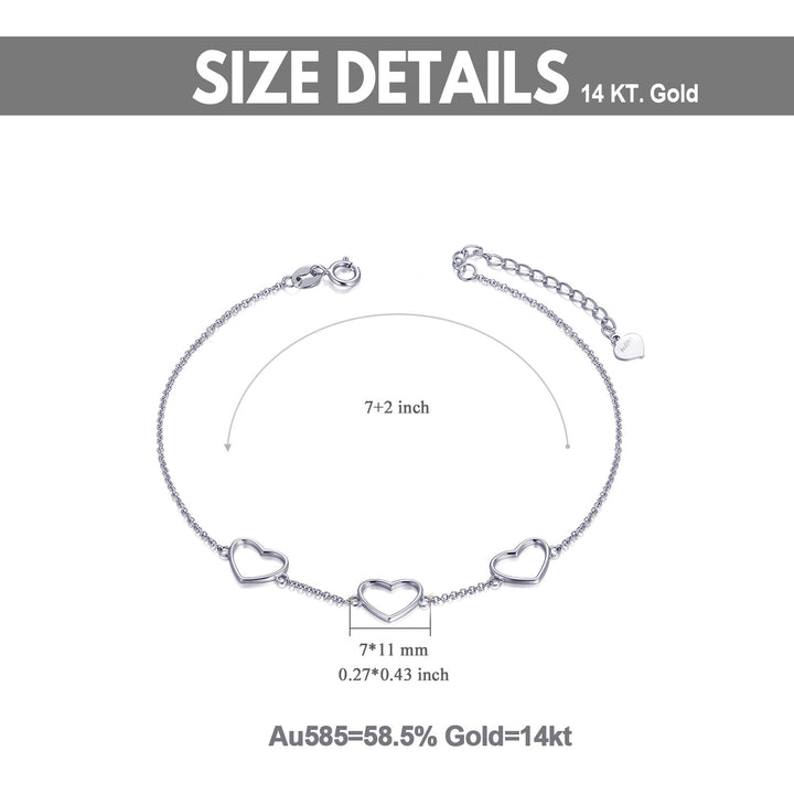 This 14K White Gold Heart Charm Bracelet by YFN embodies pure elegance through its minimalist heart motif, symbolizing love, sincerity, and refined femininity. Crafted without stones, the bracelet highlights the luminous beauty of polished 14K white gold, creating a sleek and timeless aesthetic perfect for any woman’s jewelry collection. Lightweight and versatile, it transitions effortlessly from daily wear to special occasions, making it an ideal gift or cherished personal piece. This bracelet offers understated luxury and enduring charm for the modern woman.