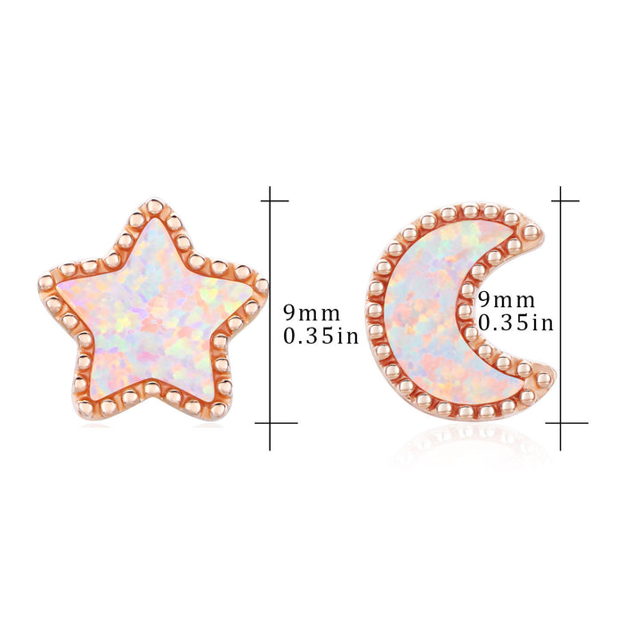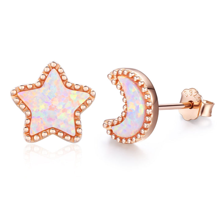 Sterling Silver with Rose gold plated Opal Moon & Stars Stud Earrings