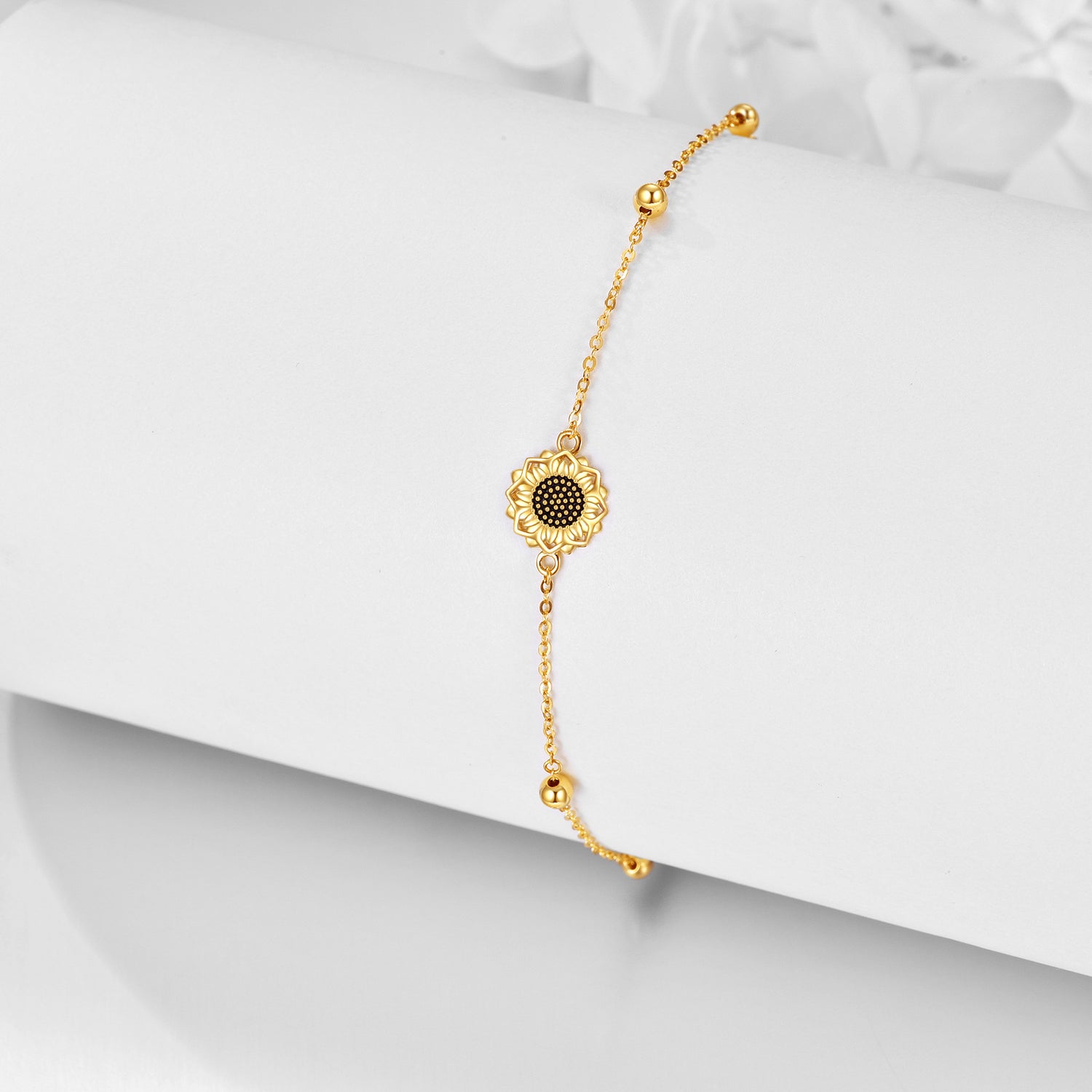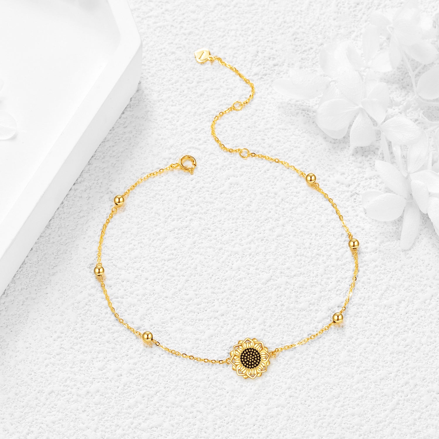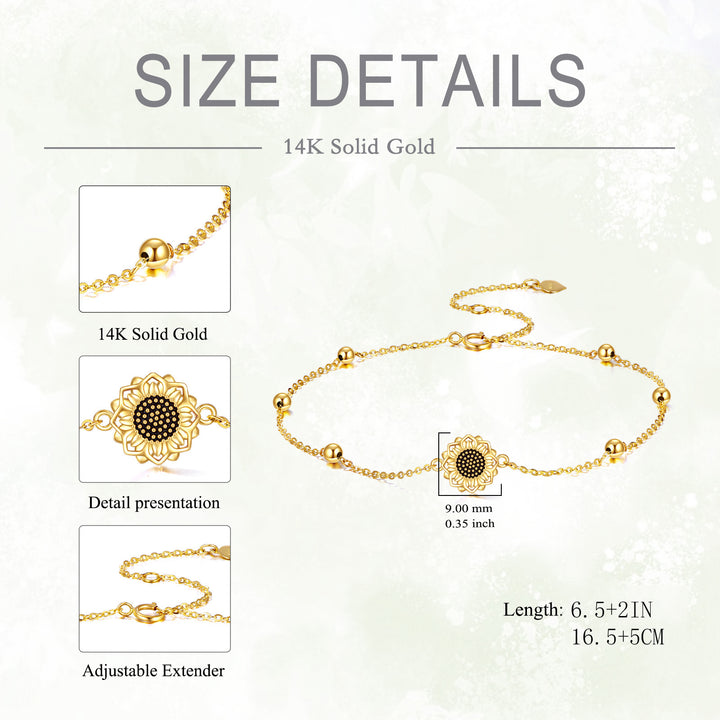 Crafted from 14K solid gold. Features a sunflower charm and a bead bracelet design. Stone-free design. Secured with a durable clasp.