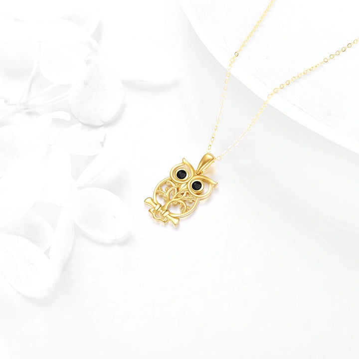 This no-stone Women's Pendant Necklace is crafted from Premium 14K Gold, Featuring a Minimalist Owl Pendant Design.