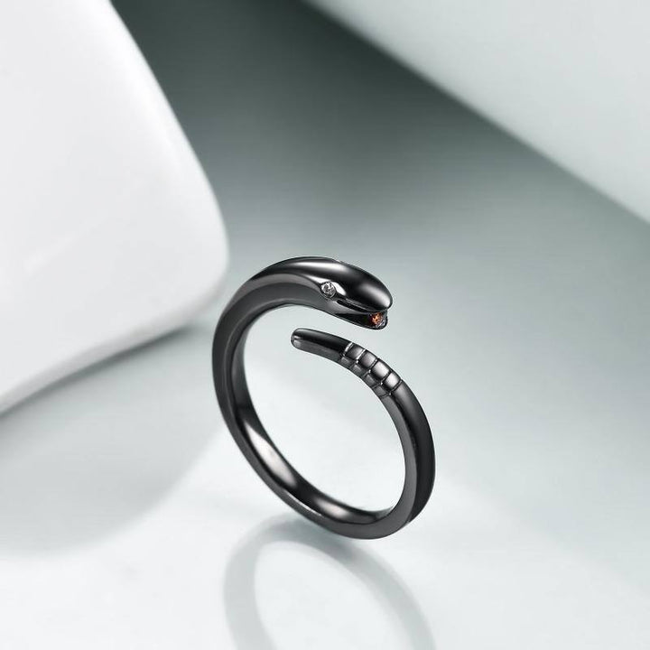 This Sterling Silver Black Rhodium Snake Open Ring by YFN blends bold edge with refined artistry. The sleek snake motif and striking black rhodium finish create a unisex piece with modern, expressive charm, perfect for elevating any look.