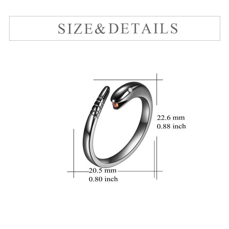 Sterling Silver with Black Rhodium Zircon Snake Open Ring