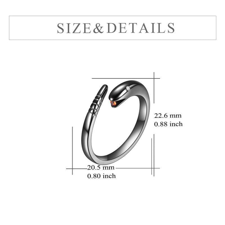 Crafted from Solid 925 Sterling Silver with Black Rhodium Coating featuring a stone-free Snake motif and adjustable open design.