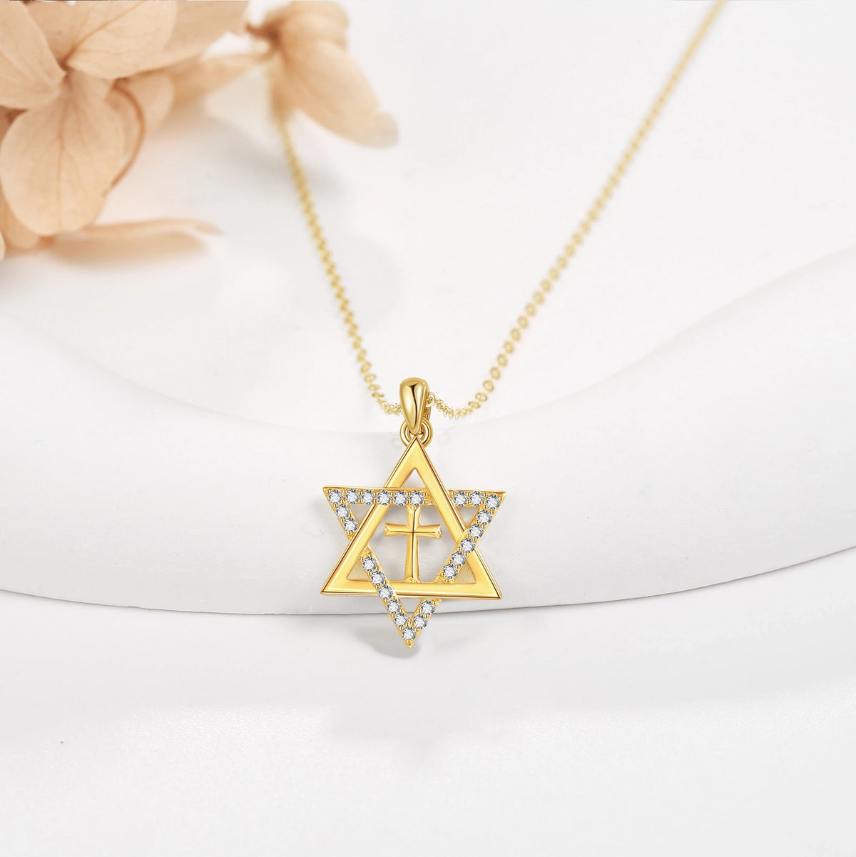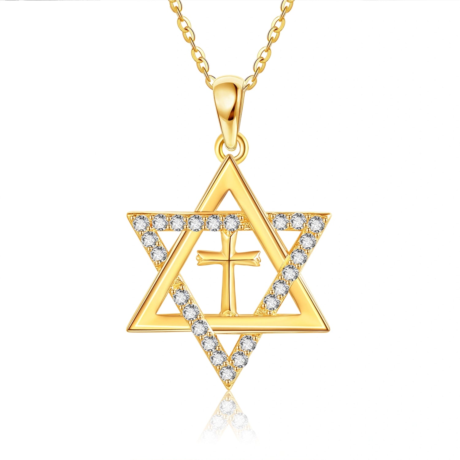 This 14K Gold Cubic Zirconia Cross & Star Of David Pendant Necklace by YFN is a sophisticated and meaningful accessory for women. This stunning 14K Gold Pendant Necklace features intricate designs of Cubic Zirconia-Encrusted Cross and Star of David Symbols.