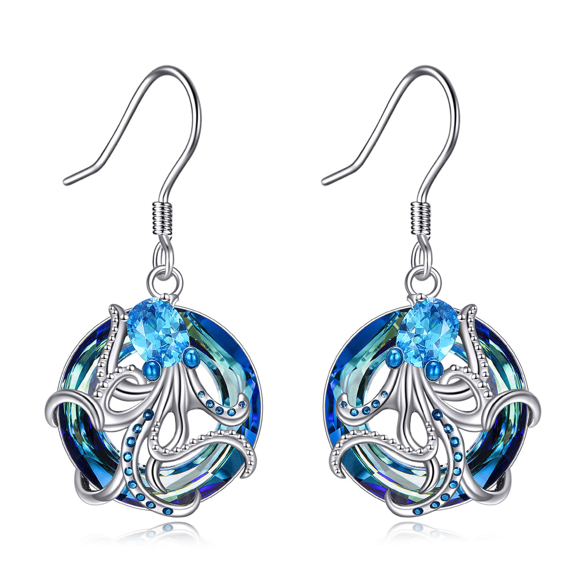 Sterling Silver Cubic Zirconia Octopus Drop Earrings