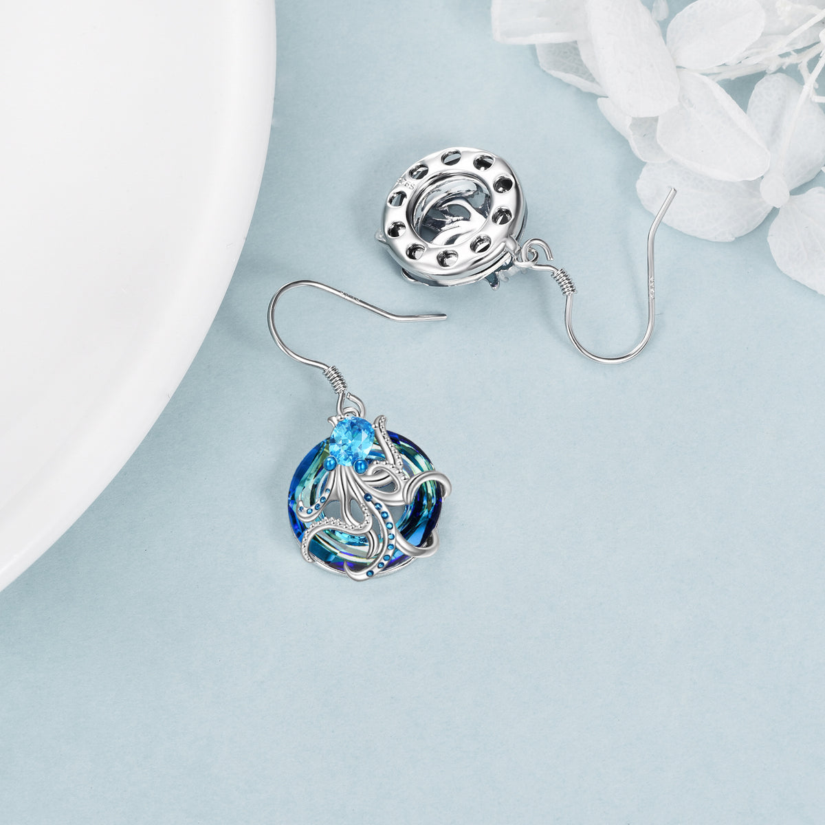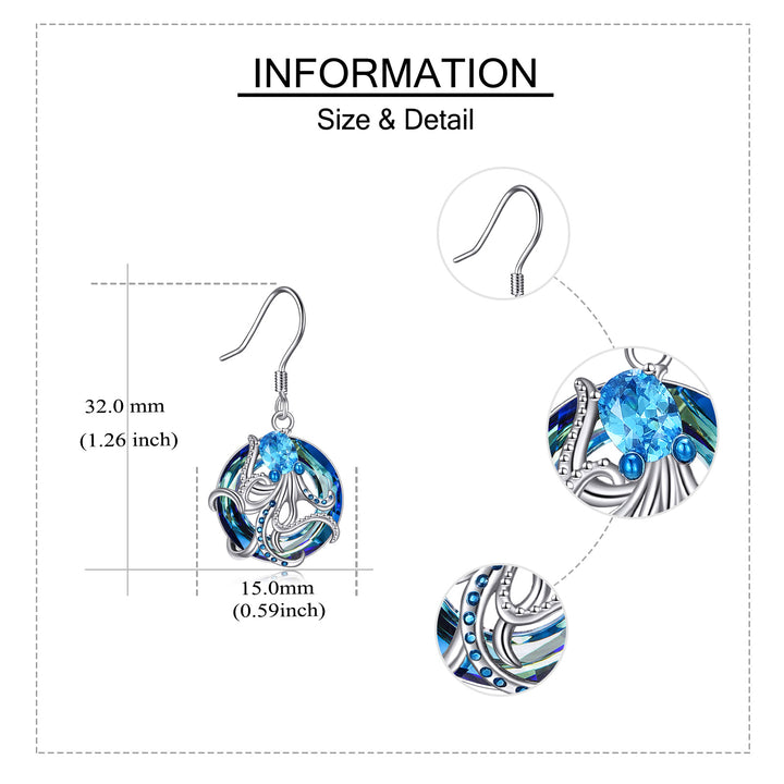 These Drop Earrings are crafted from High-Quality Sterling Silver with White Gold Plating, Featuring an Intricate Octopus Design and Sparkling Cubic Zirconia.