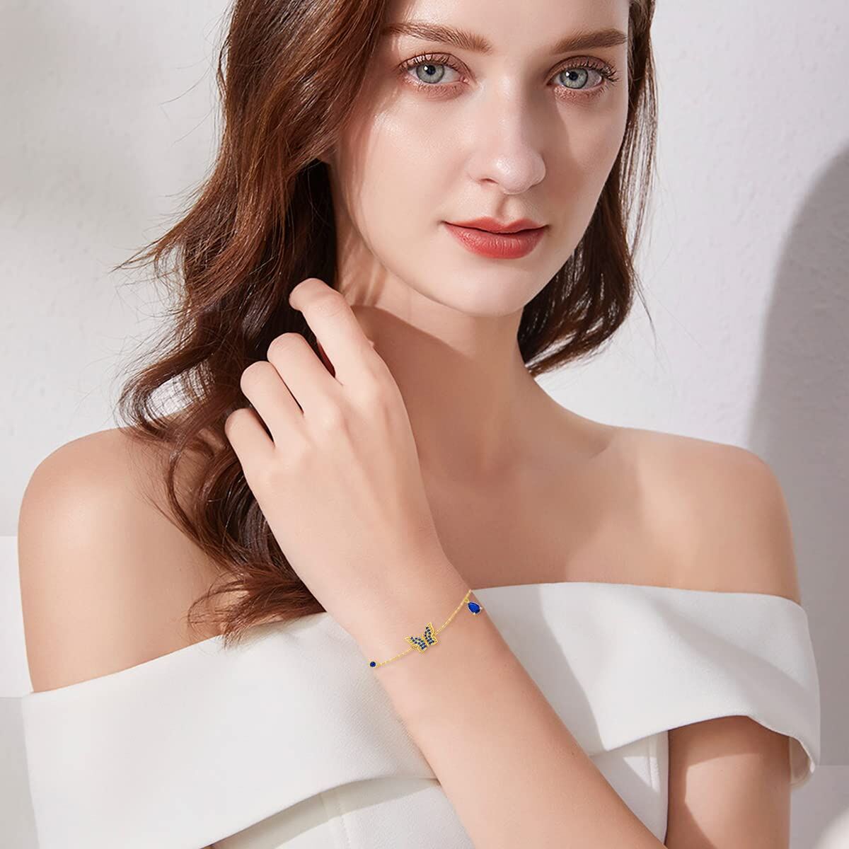 This 14K Gold Butterfly Charm Bracelet by YFN celebrates delicate beauty through a butterfly motif adorned with sparkling blue Cubic Zirconia. The fine craftsmanship and brilliant color create a charming accessory ideal for women who enjoy feminine elegance with a touch of vibrant flair.