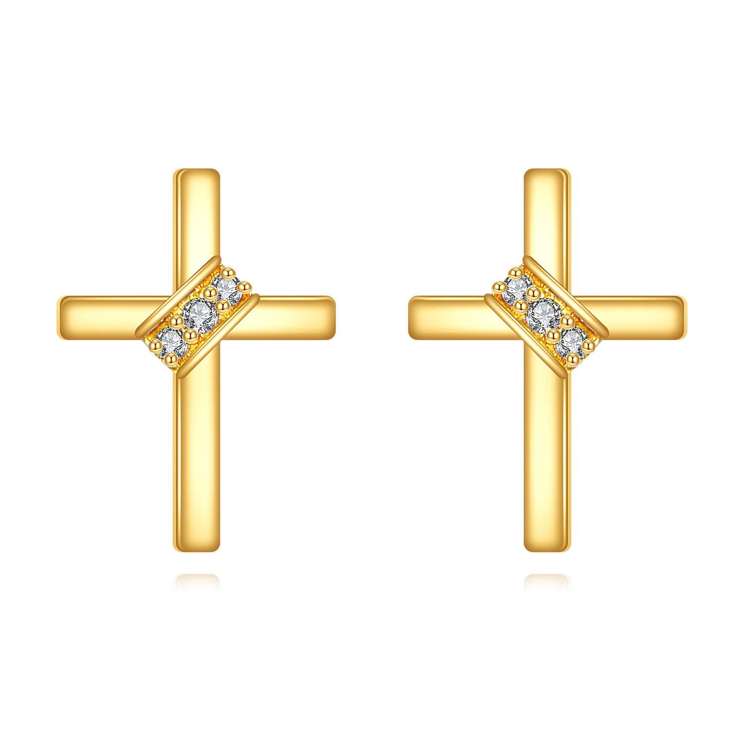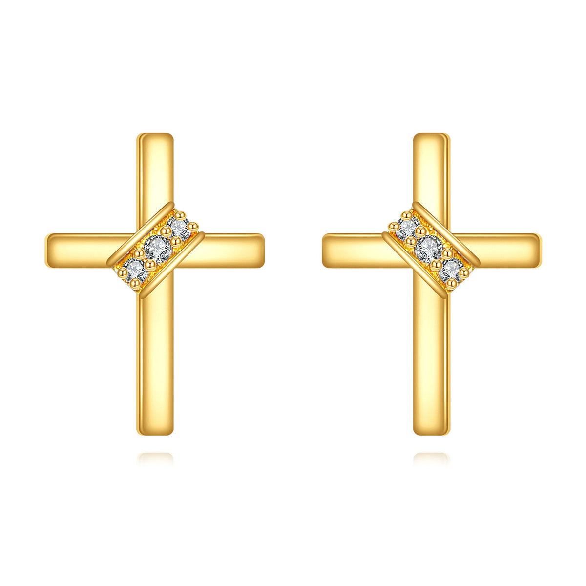 Crafted from solid 14K Gold. These are Stud Earrings featuring a Cross motif, set with Moissanite stones.