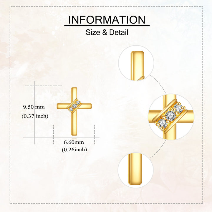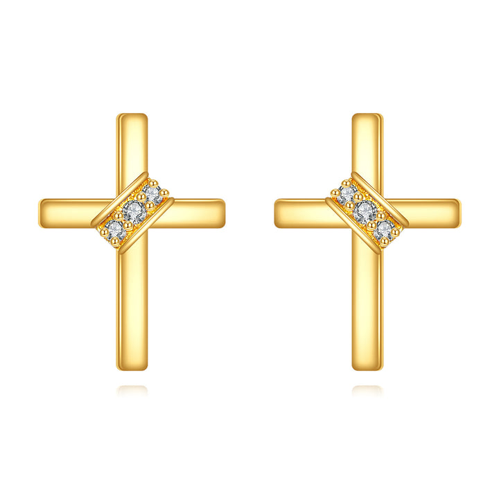 14K Gold Moissanite Cross Stud Earrings