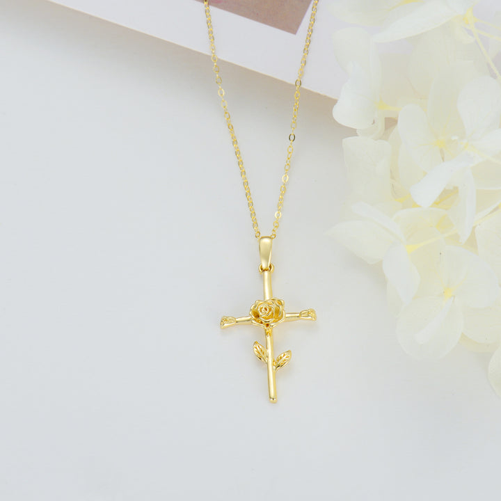 This Rose & Cross Pendant Necklace by YFN is the epitome of elegance, meticulously designed for women who cherish timeless beauty and simplicity. Crafted in radiant 14K Gold with a rose gold finish, this exquisite Pendant Necklace features a classic cross design. The absence of stones allows the stunning finish to shine, making it perfect for those who appreciate understated luxury and sophisticated charm.