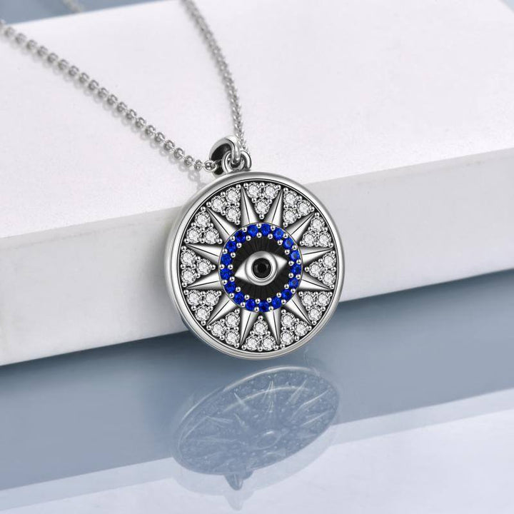 Sterling Silver Circular Shaped Cubic Zirconia Evil Eye & Sun Pendant Necklace