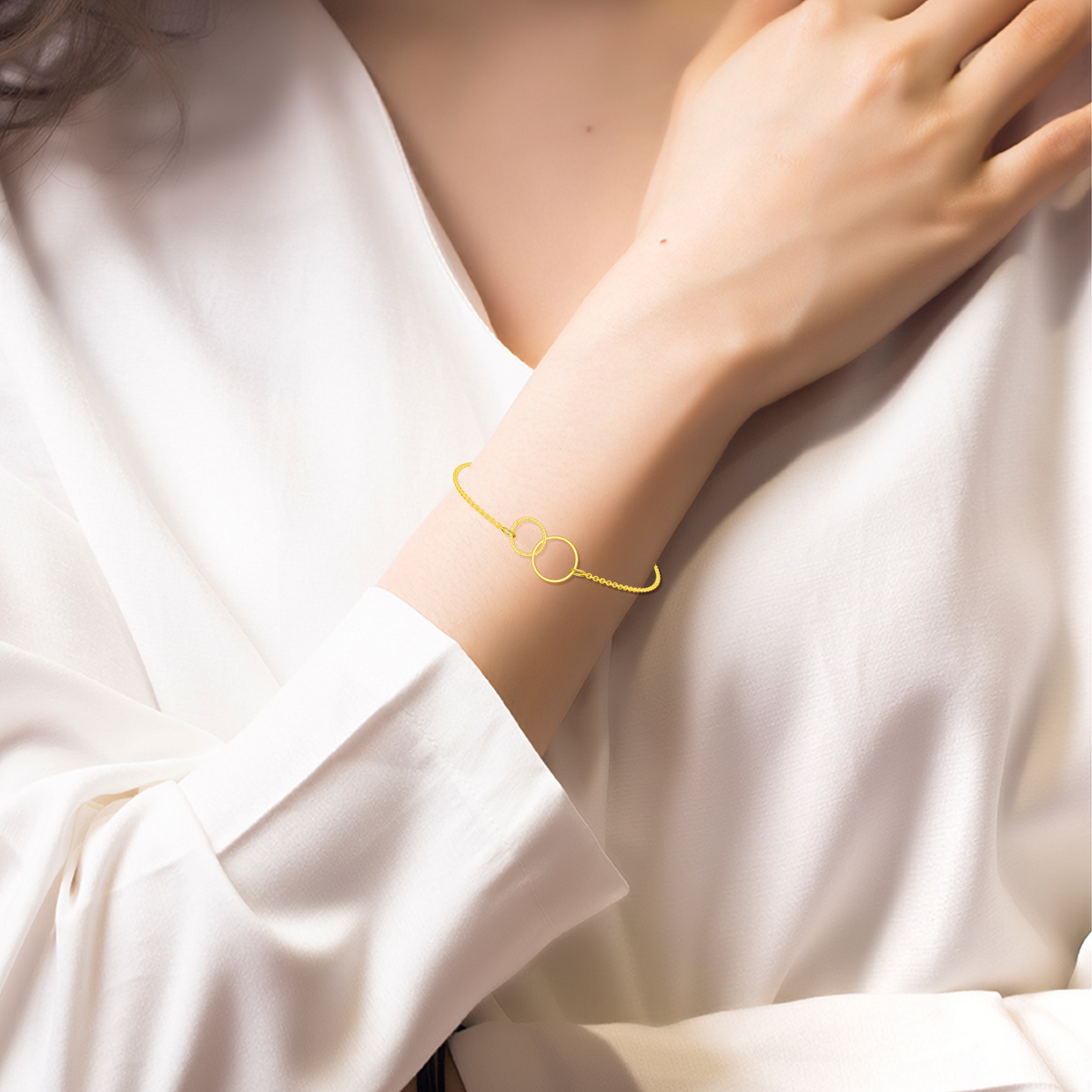 This 14K Gold Round Ring Charm Bracelet by YFN is a timeless piece designed for the modern woman who appreciates elegance and simplicity. Crafted from high-quality 14K gold, this durable and lightweight bracelet features round charms that can be personalized. Its minimalist design and radiant shine effortlessly enhance any outfit, making it the ideal accessory to celebrate individuality.