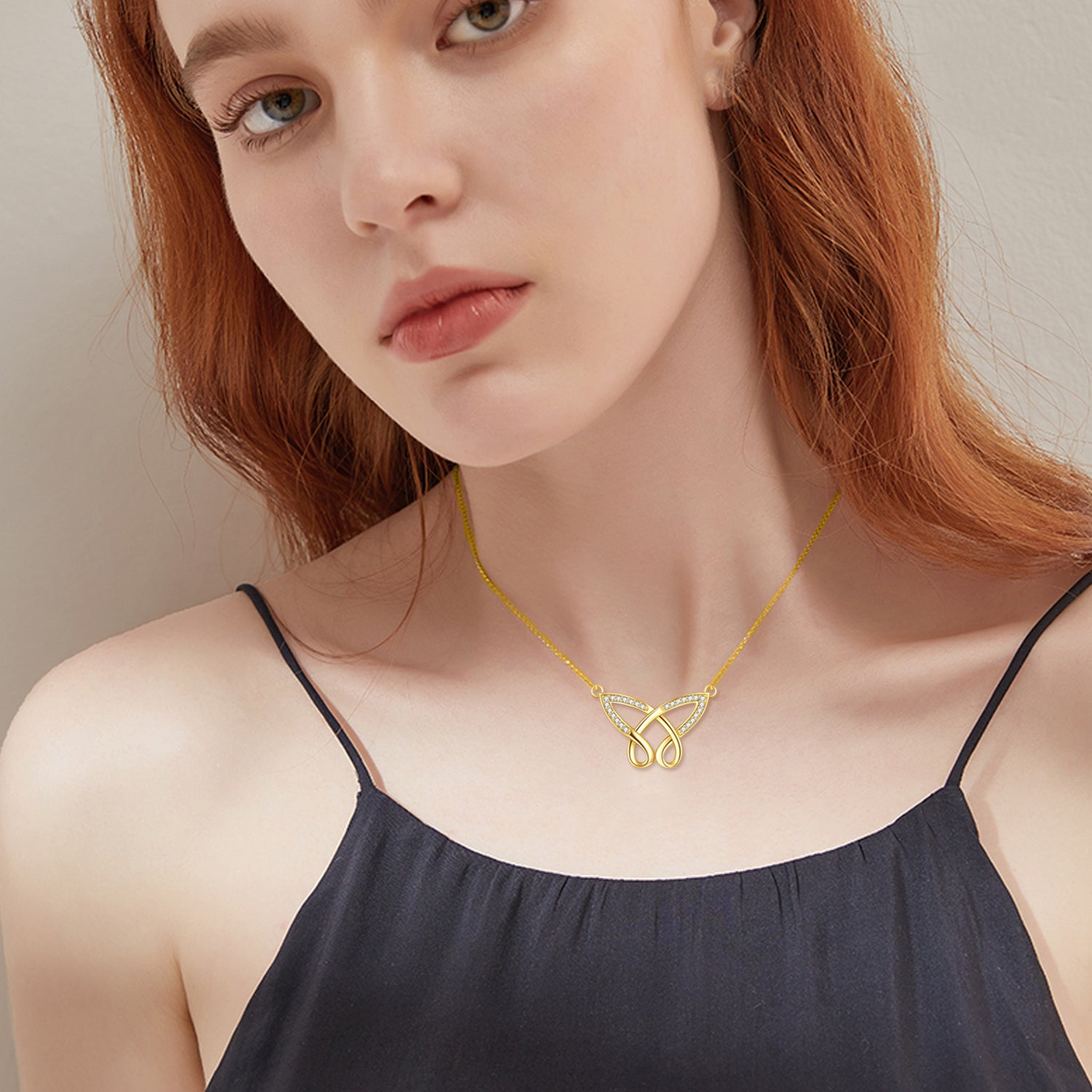 This 14K Gold Cubic Zirconia Butterfly Pendant Necklace by YFN symbolizes transformation and beauty. Glittering CZ stones illuminate the delicate butterfly wings, offering a feminine and timeless accessory suited for any occasion.