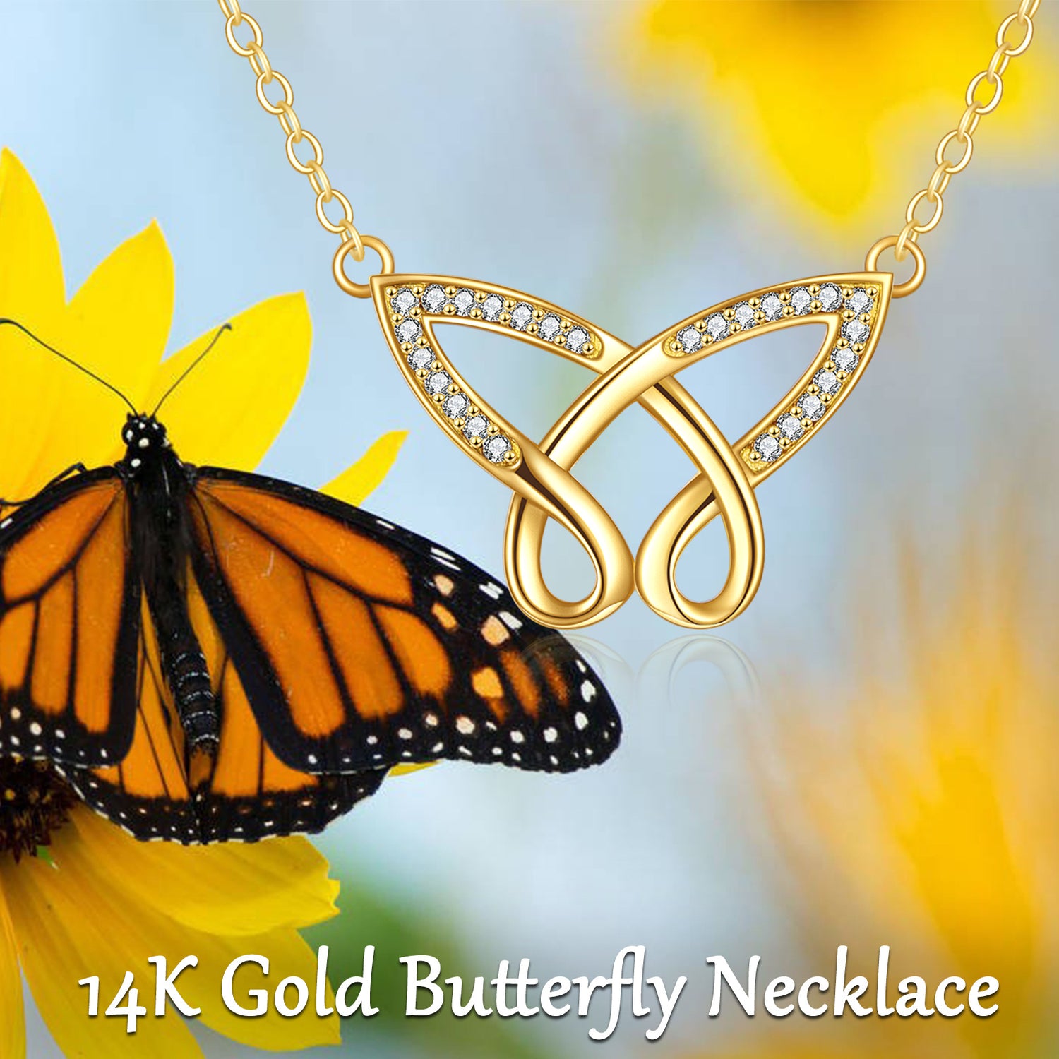 14K Gold Cubic Zirconia Butterfly Pendant Necklace