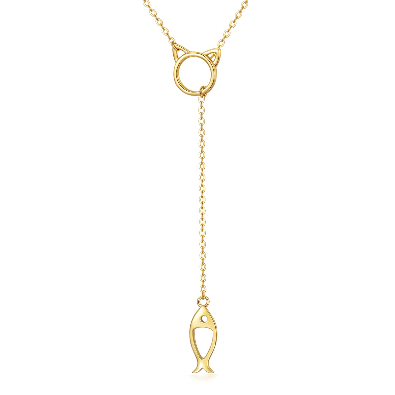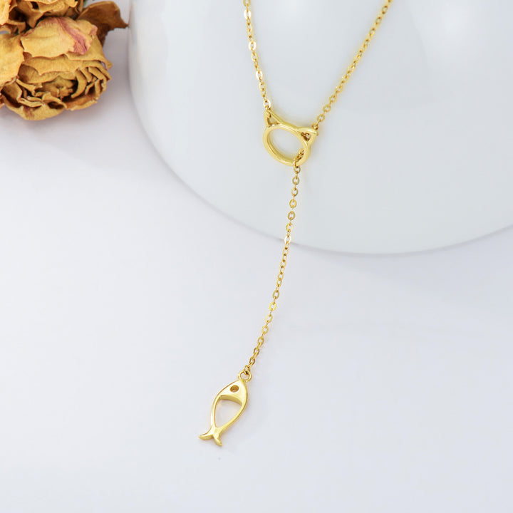 This stone-free Non-adjustable Y-Necklace is crafted from premium 14K Gold, featuring an exquisite Fish Design.