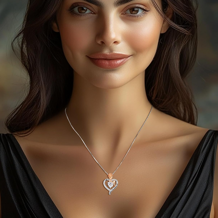 This 14K White Gold Moissanite Personalized Engraving Rose Heart Necklace by YFN is a romantic expression of devotion, designed to capture light and emotion in equal measure. The sculpted heart silhouette, intertwined with a blooming rose motif, brings together themes of eternal love and blossoming affection. Its centerpiece—a 2-carat D-color, VVS1 heart-cut moissanite—radiates with exceptional brilliance, making the necklace feel luminous from every angle. Custom engraving adds a deeply personal layer, transforming the pendant into a wearable keepsake that commemorates meaningful moments. The generous proportions of the pendant make it an elegant statement, while the adjustable chain offers versatile styling. This necklace embodies sentimental beauty, making it perfect for marking love stories, milestones, and cherished memories.