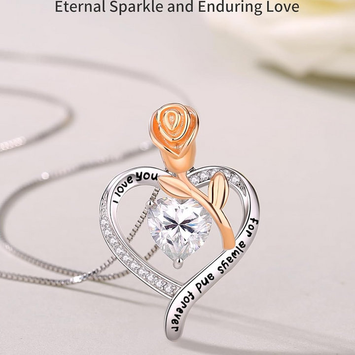 14K White Gold Moissanite Personalized Engraving Rose Heart Necklace for Women