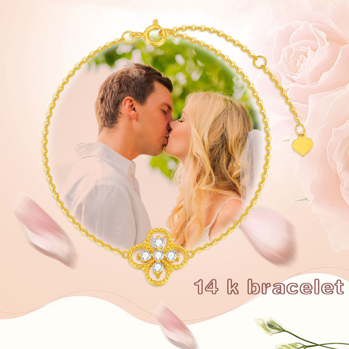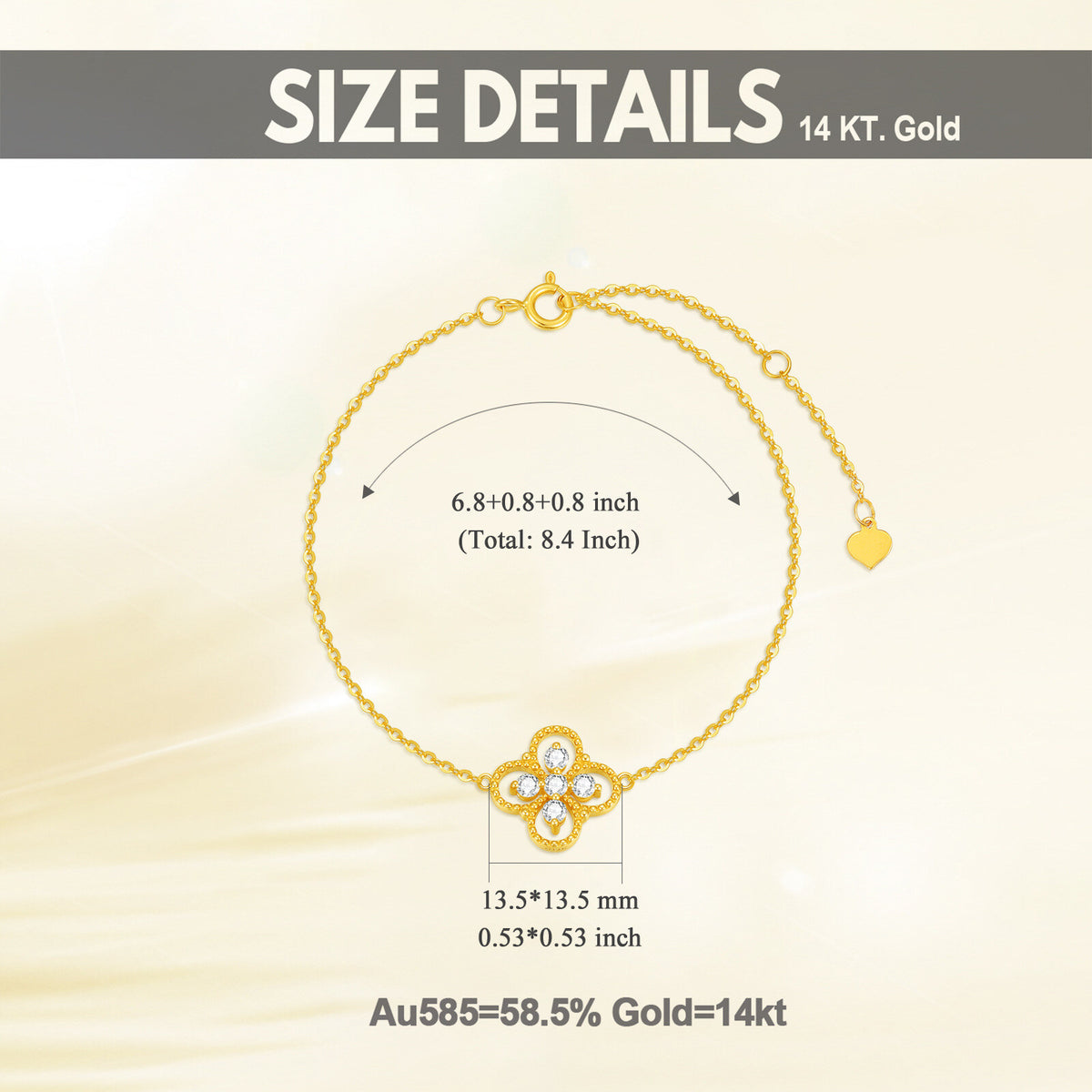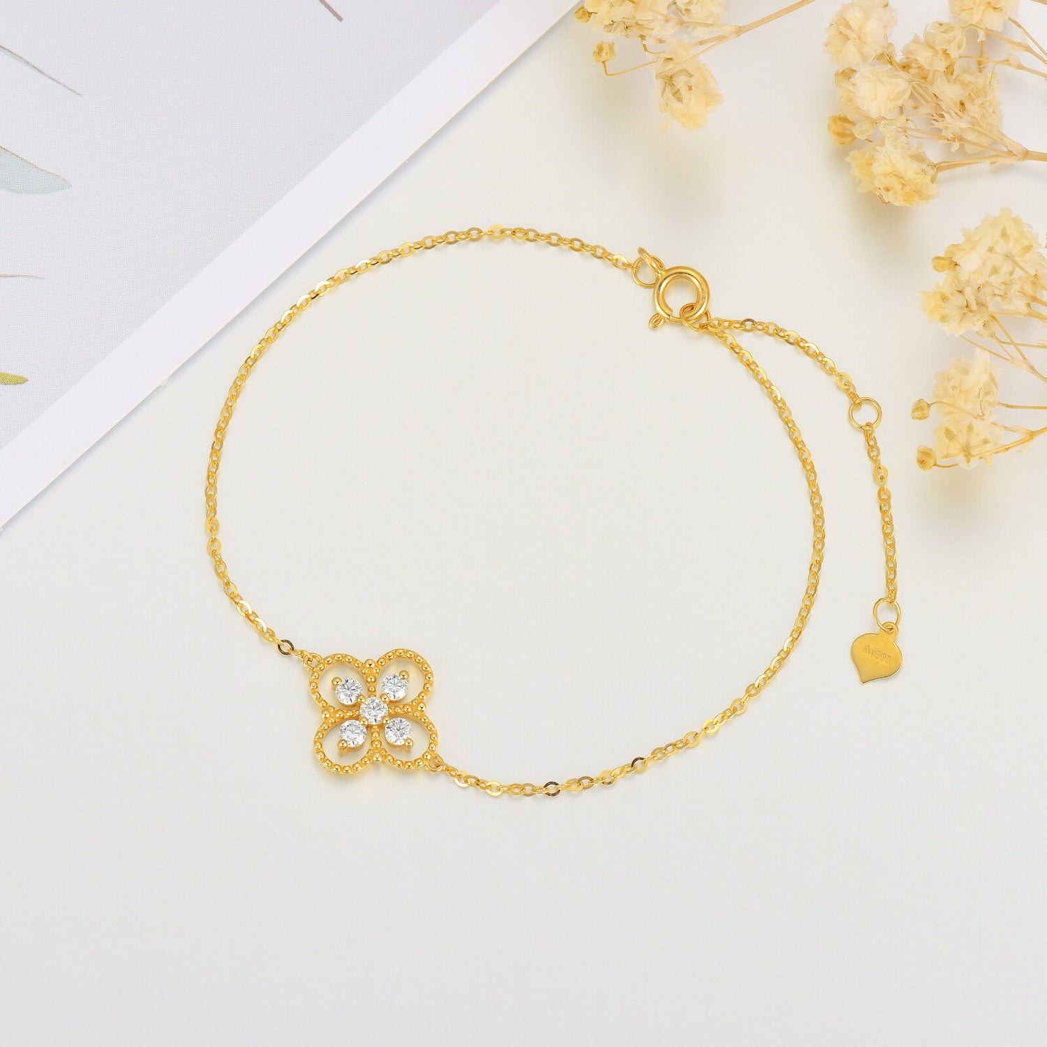 14K Gold Circular Shaped Moissanite Four-leaf Clover Charm Bracelet