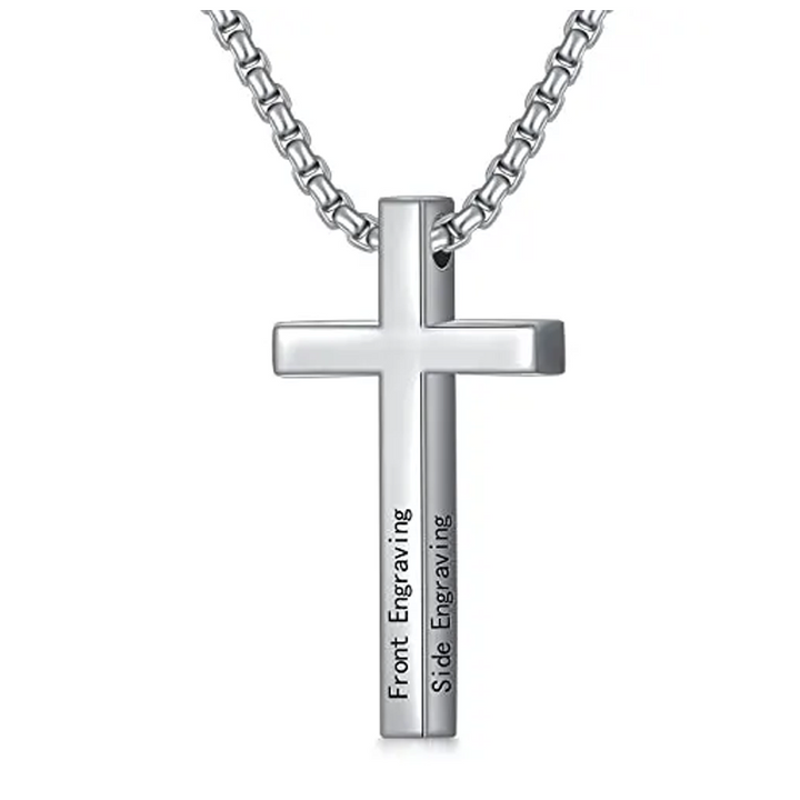 Unisex Sterling Silver Personalized Engraving & Cross Pendant Necklace