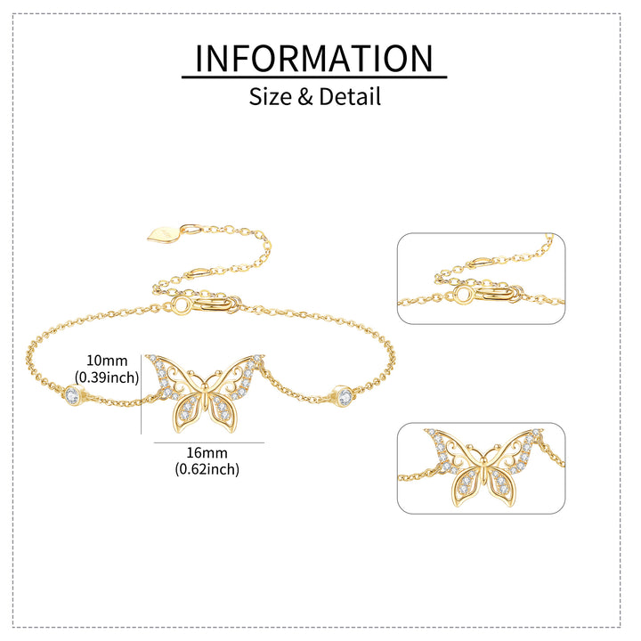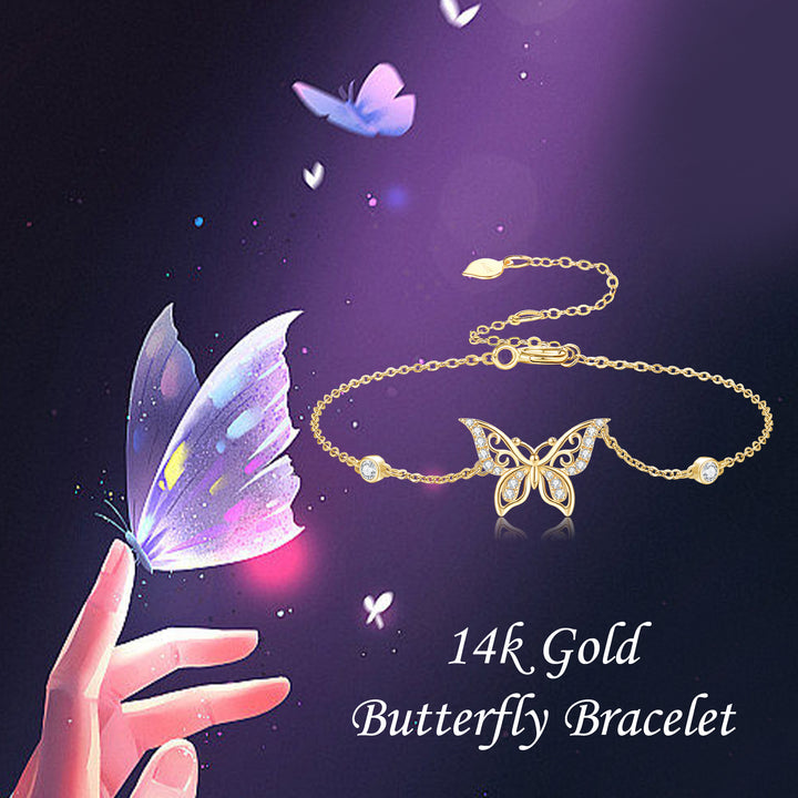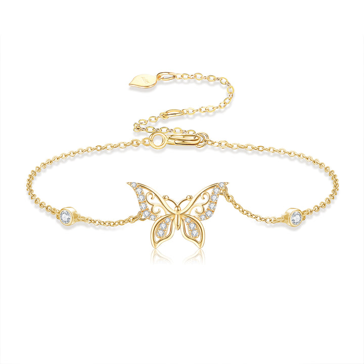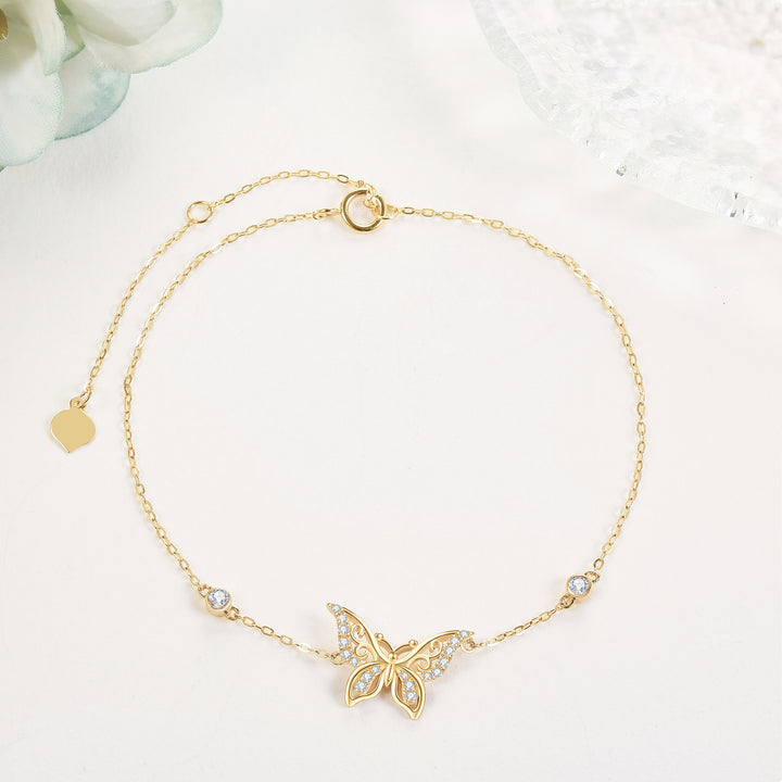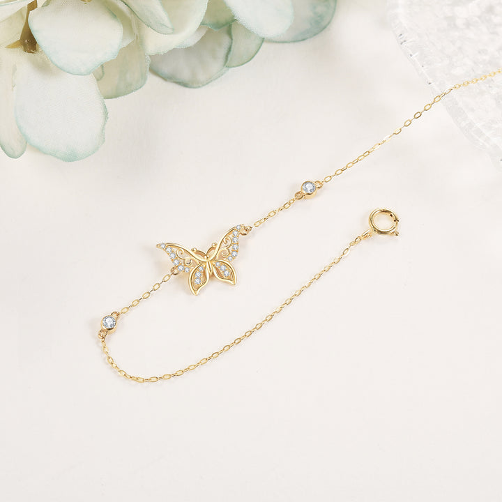 14K Gold Moissanite Butterfly Bracelet for Women