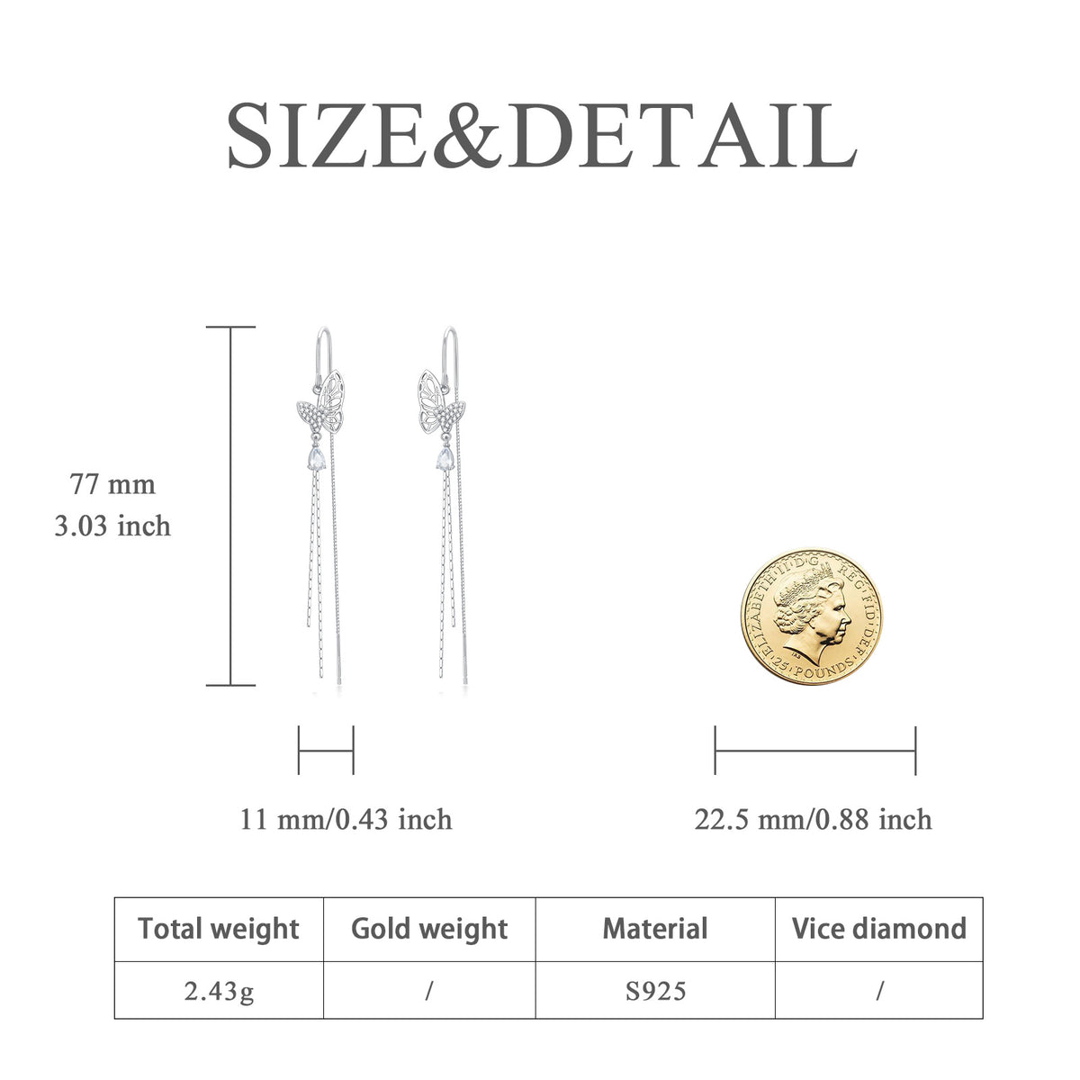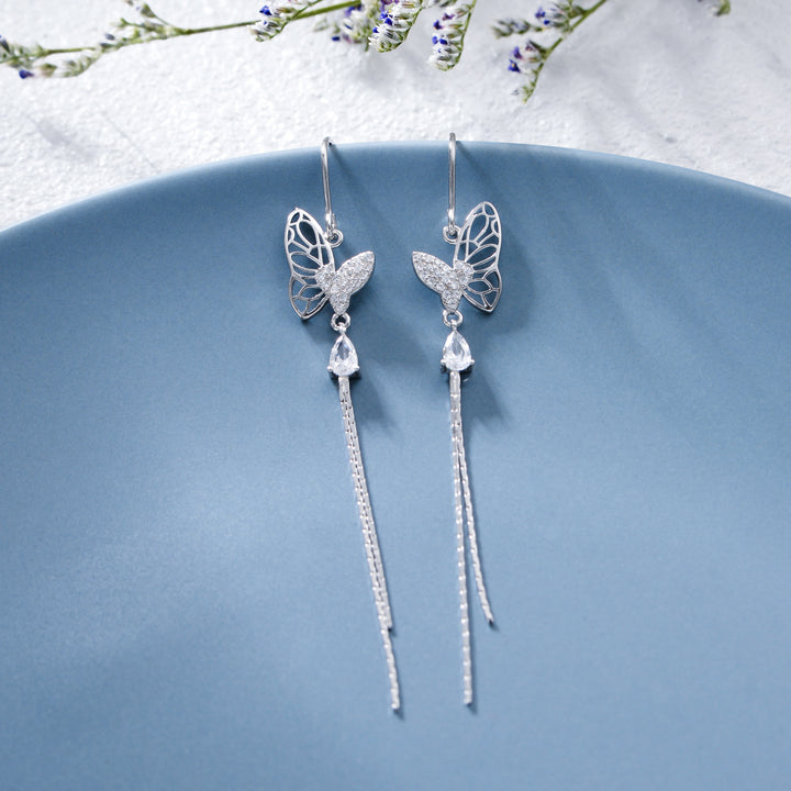 These Women's Drop Earrings are Crafted from Premium Sterling Silver with White Gold Plating, Adorned with Dazzling Cubic Zirconia Butterflies.