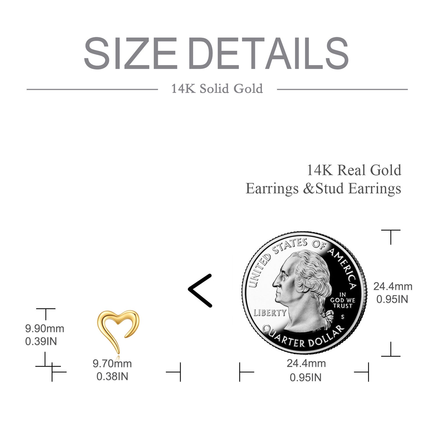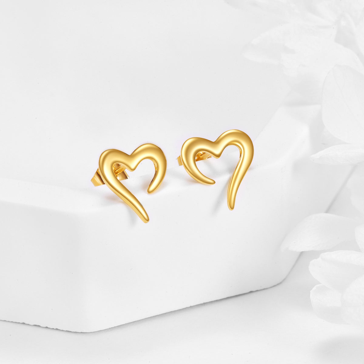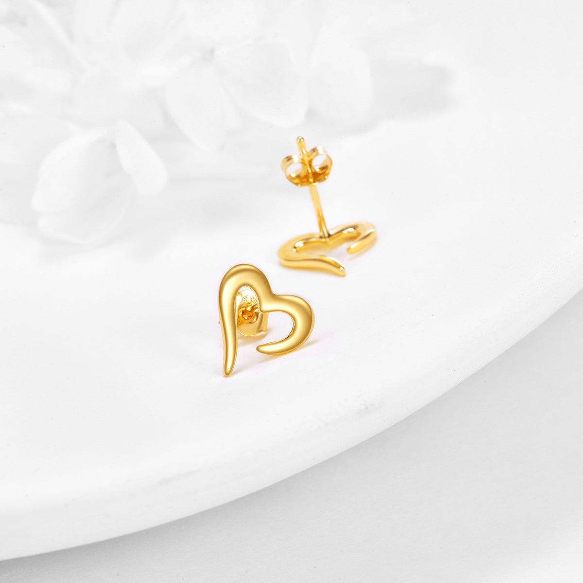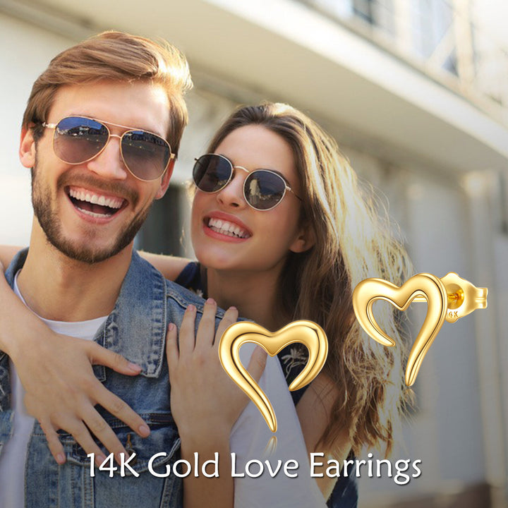 14K Gold Heart Stud Earrings